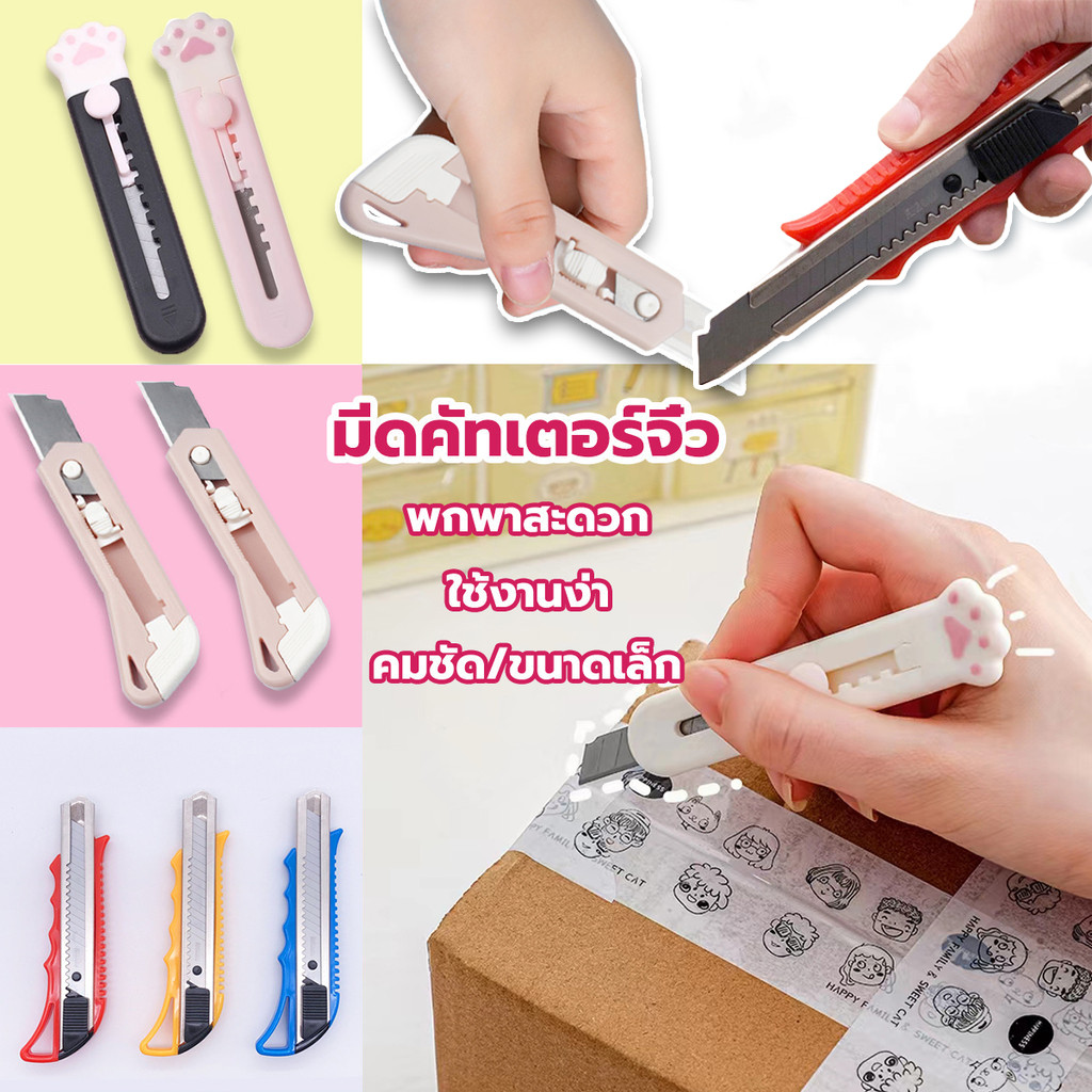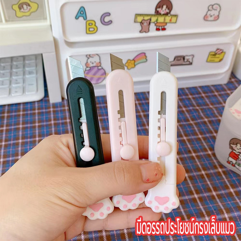 มีดคัทเตอร์จิ๋ว มินิคัตเตอร์พกพา มีดแมวน่ารัก คัตเตอร์สแตนเลส คมชัด สีพาสเทล ขนาดเล็ก
