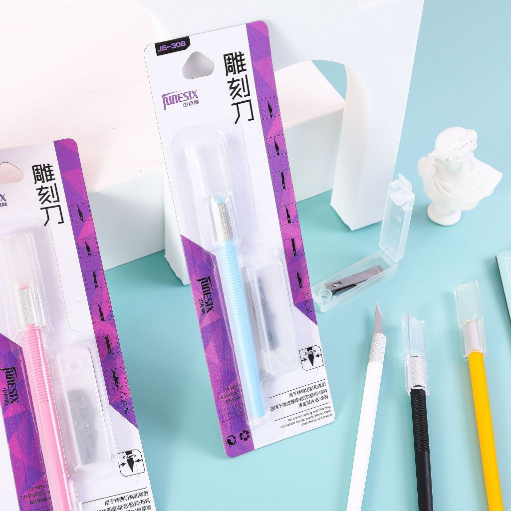มีดแกะสลัก แกะสลักยางลบ แกะสลักตรายาง พร้อมคมมีดสำหรับเปลี่ยน 5แบบ ผลิตจากวัสดุมีคุณภาพดี พร้อมส่ง