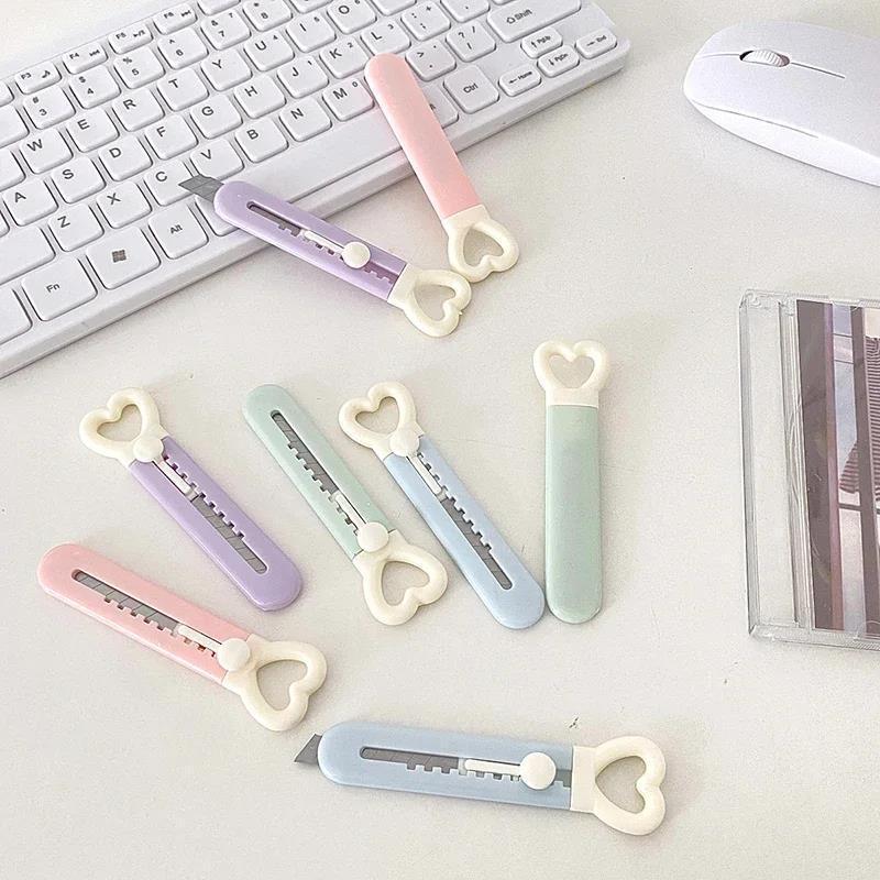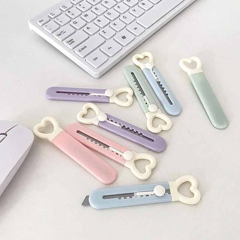 น่ารัก รักหัวใจมีดยูทิลิตี้มินิเครื่องตัดกระดาษแบบพกพามีดพ็อกเก็ตความปลอดภัยกล่องตัดซองจดหมายเปิดใบมีดรีฟิลเครื่องเขียนศิลปะมีด