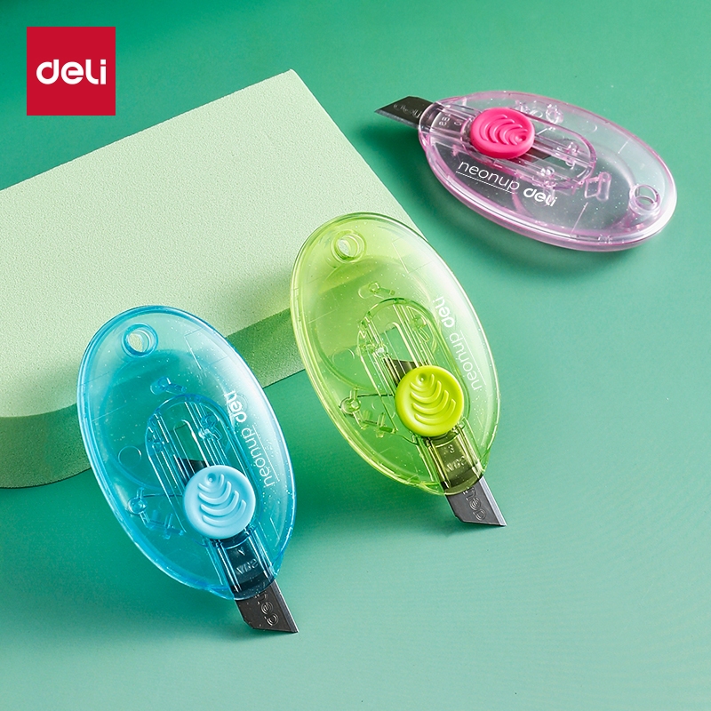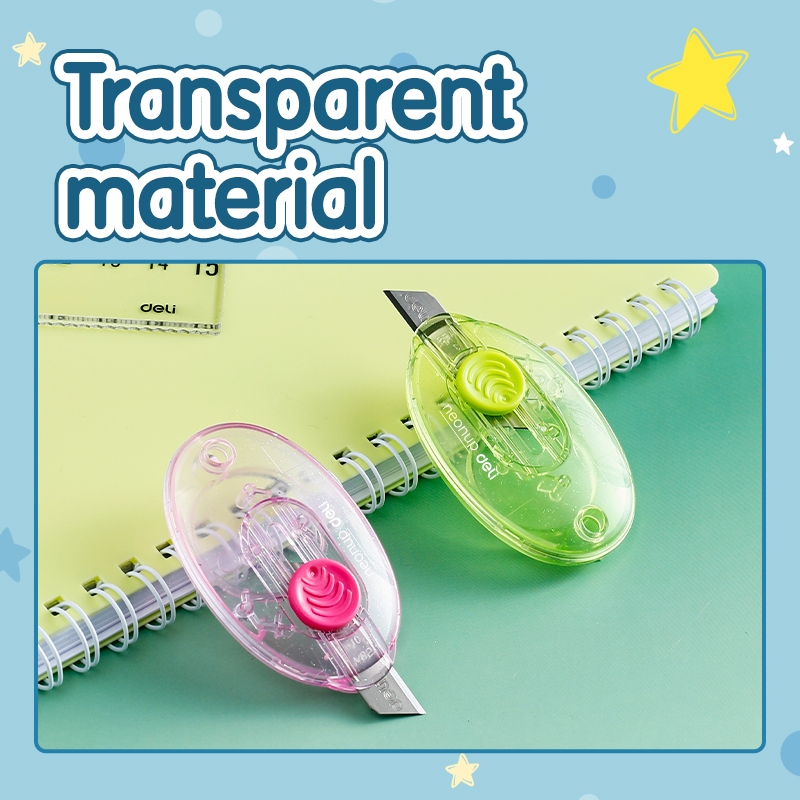 มีดคัตเตอร์ Deli คัตเตอร์เล็ก คัตเตอร์พกพา มีดตัดกระดาษ ลายแฟนซี อุปกรณ์ศิลปะ ขนาดเล็ก (คละสี 1 ชิ้น)