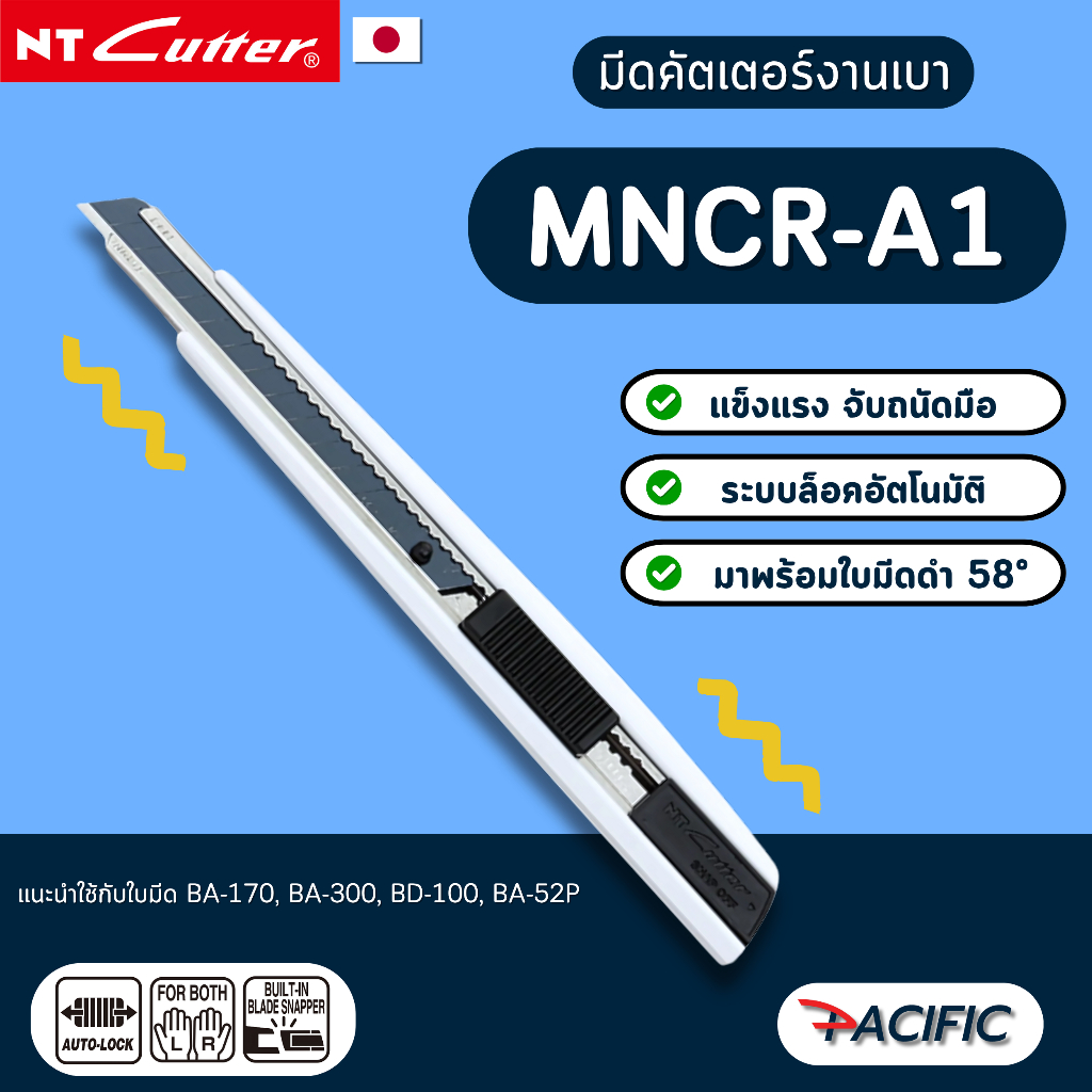 มีดคัตเตอร์ NT MNCR-A1 ด้ามเล็กสีขาว ใบมีดสีดำ