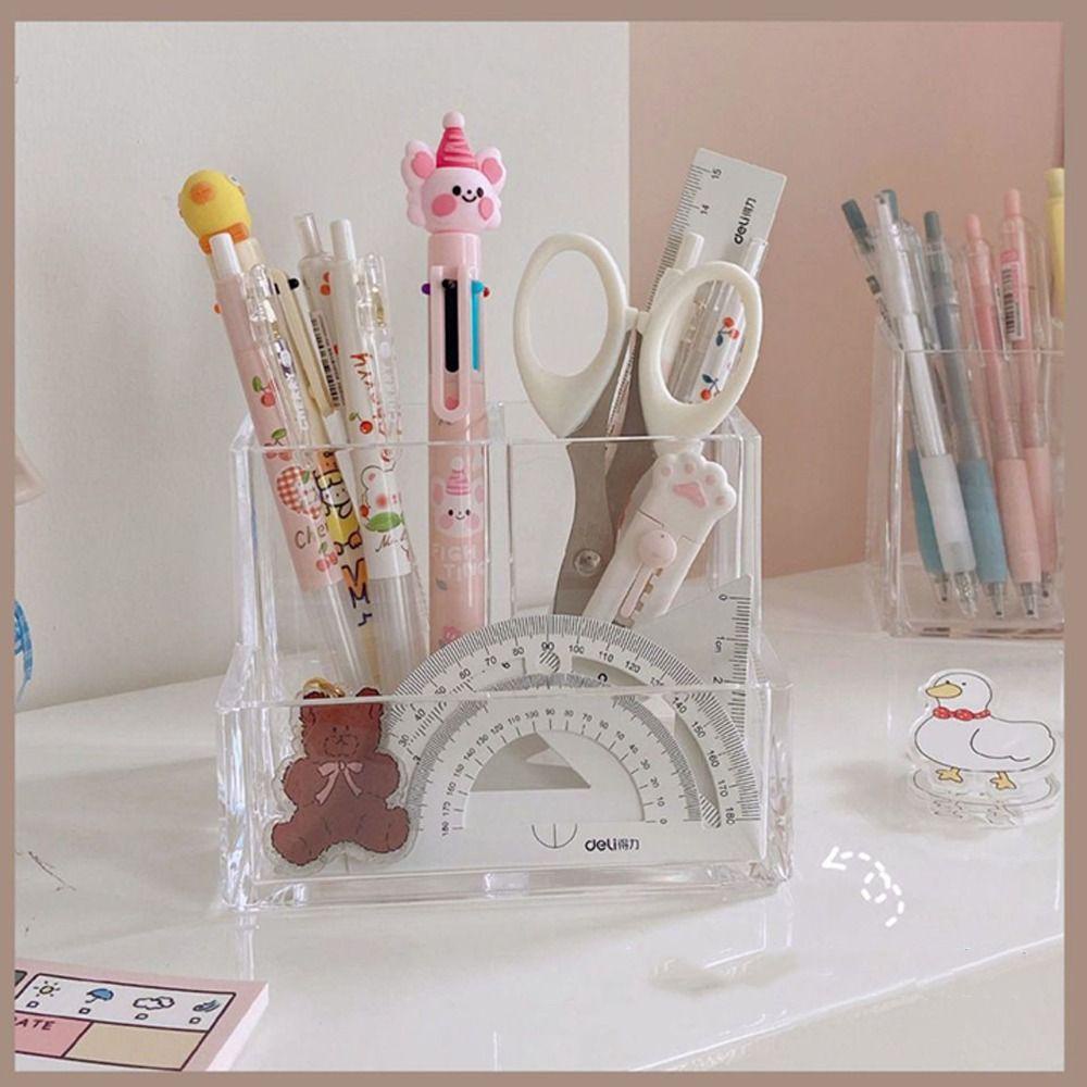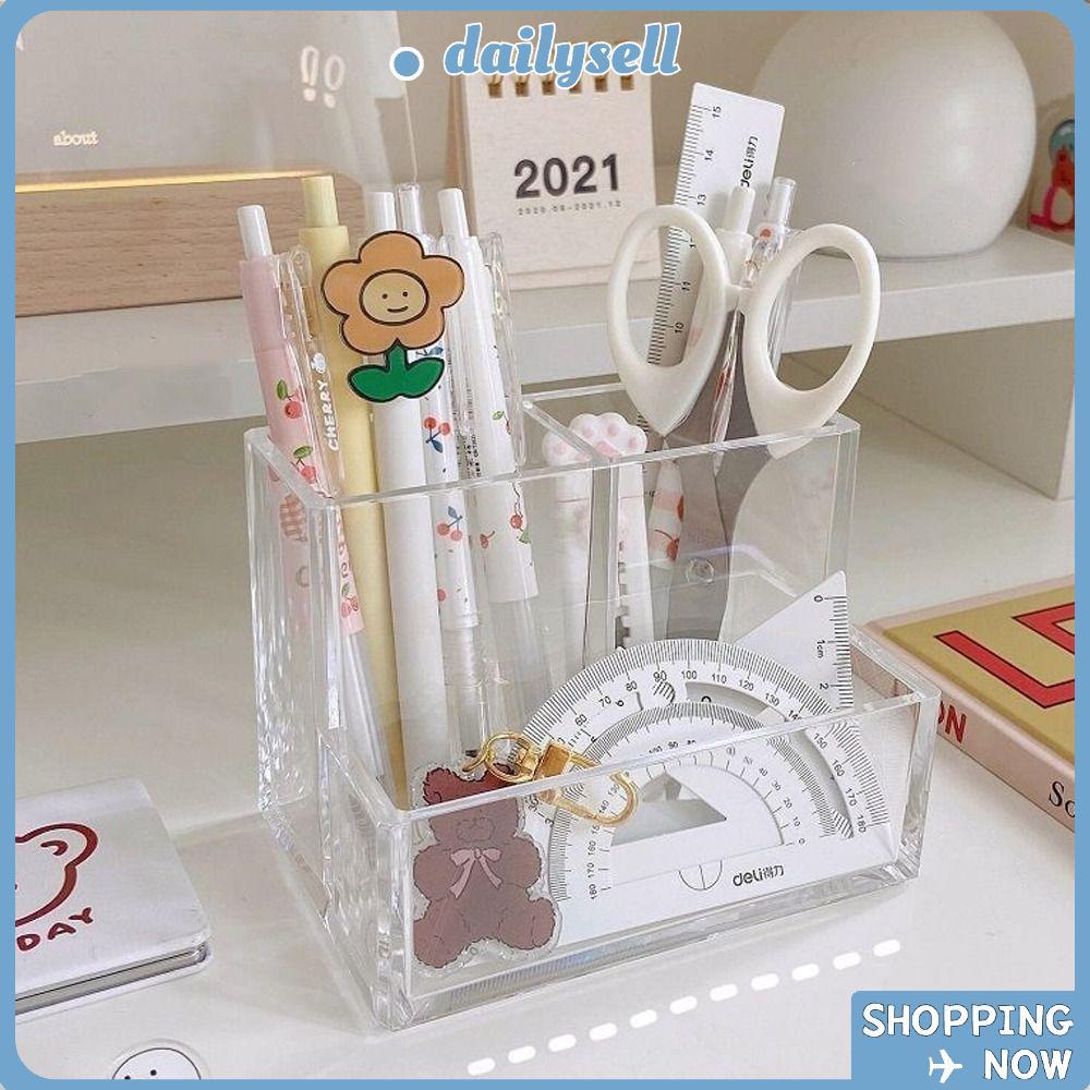 ชั้นเก็บของเดลี่, ที่ใส่ปากกาอะคริลิกเครื่องเขียนสามตาราง, สํานักงานชั้นวางดินสอโปร่งใสทรงสี่เหลี่ยมความจุขนาดใหญ่
