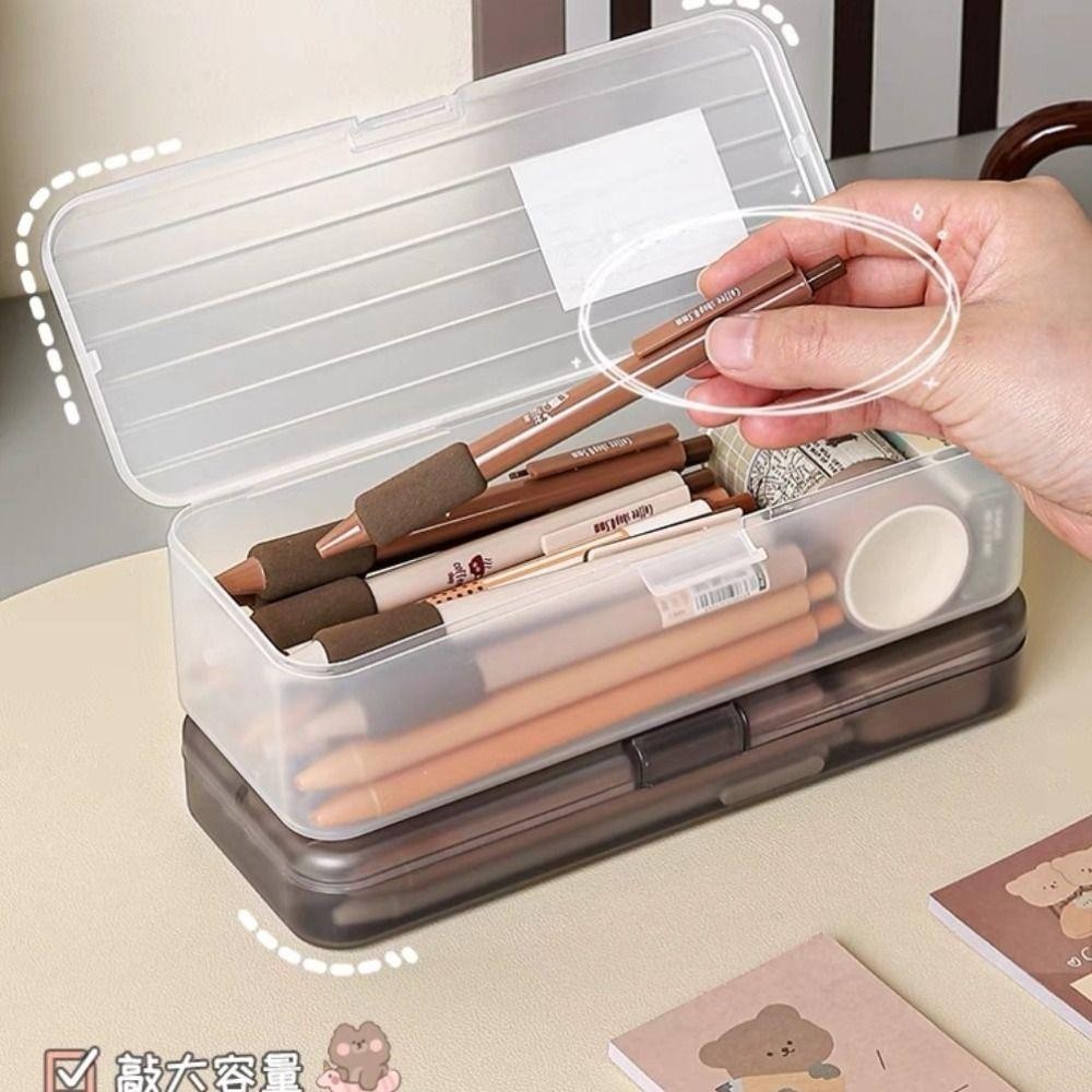 ซูโฮเอชดี กล่องเครื่องเขียน,กล่องเก็บของพลาสติกความจุขนาดใหญ่,กล่องใส่ปากกามัลติฟังก์ชั่นแบบใสเรียบง่ายของขวัญ