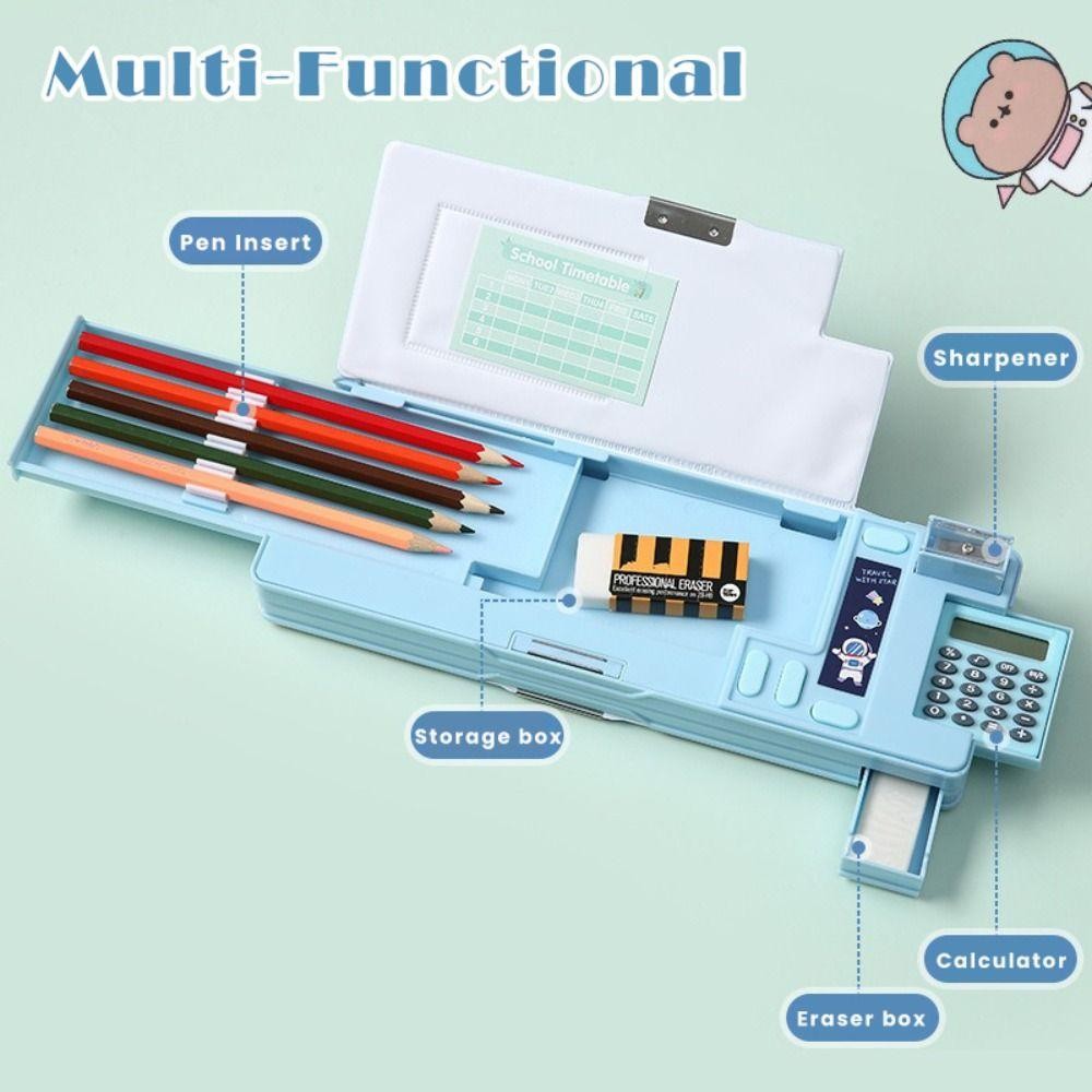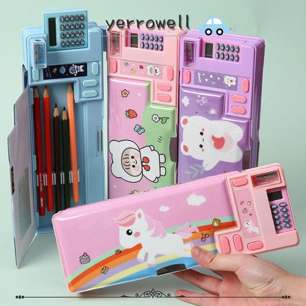 ดินสอ เยอร์โรเวลล์ กล่องดินสอพลาสติกความจุขนาดใหญ่อเนกประสงค์พร้อมเครื่องคิดเลข/กบเหลาดินสอ กล่องเก็บเครื่องเขียนสองชั้น สํานักงานโรง