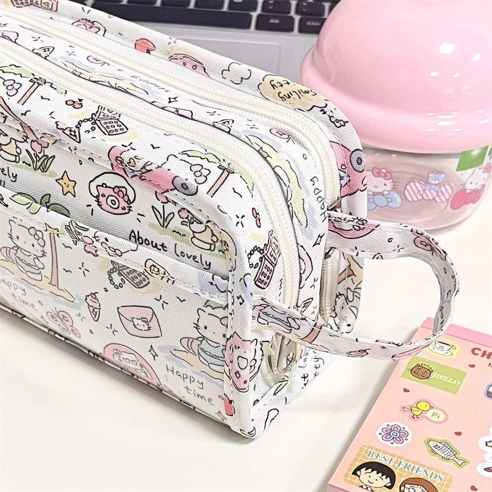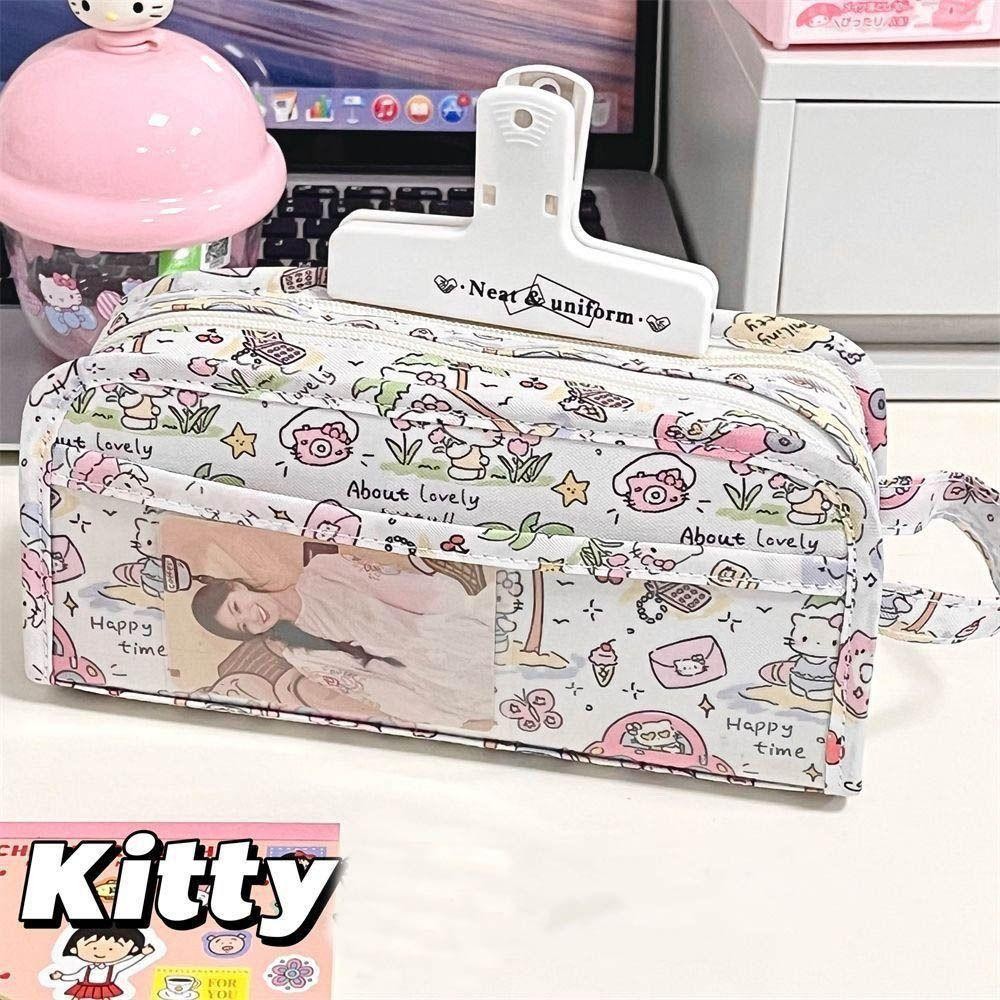 ดินสอ แล้ว ,กระเป๋าปากกาคิตตี้ผ้าใบ,กระเป๋าเก็บเครื่องเขียนความจุขนาดใหญ่อเนกประสงค์แบบพกพาของขวัญนักเรียน