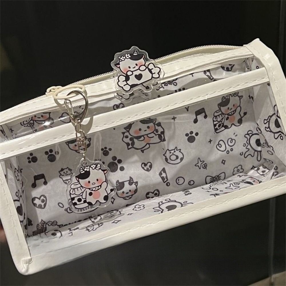ดินสอ มีความสุข66 ,น่ารักแมวโบว์ใสปากกากระเป๋า,การ์ตูนความจุขนาดใหญ่กระเป๋าเครื่องเขียนของขวัญ