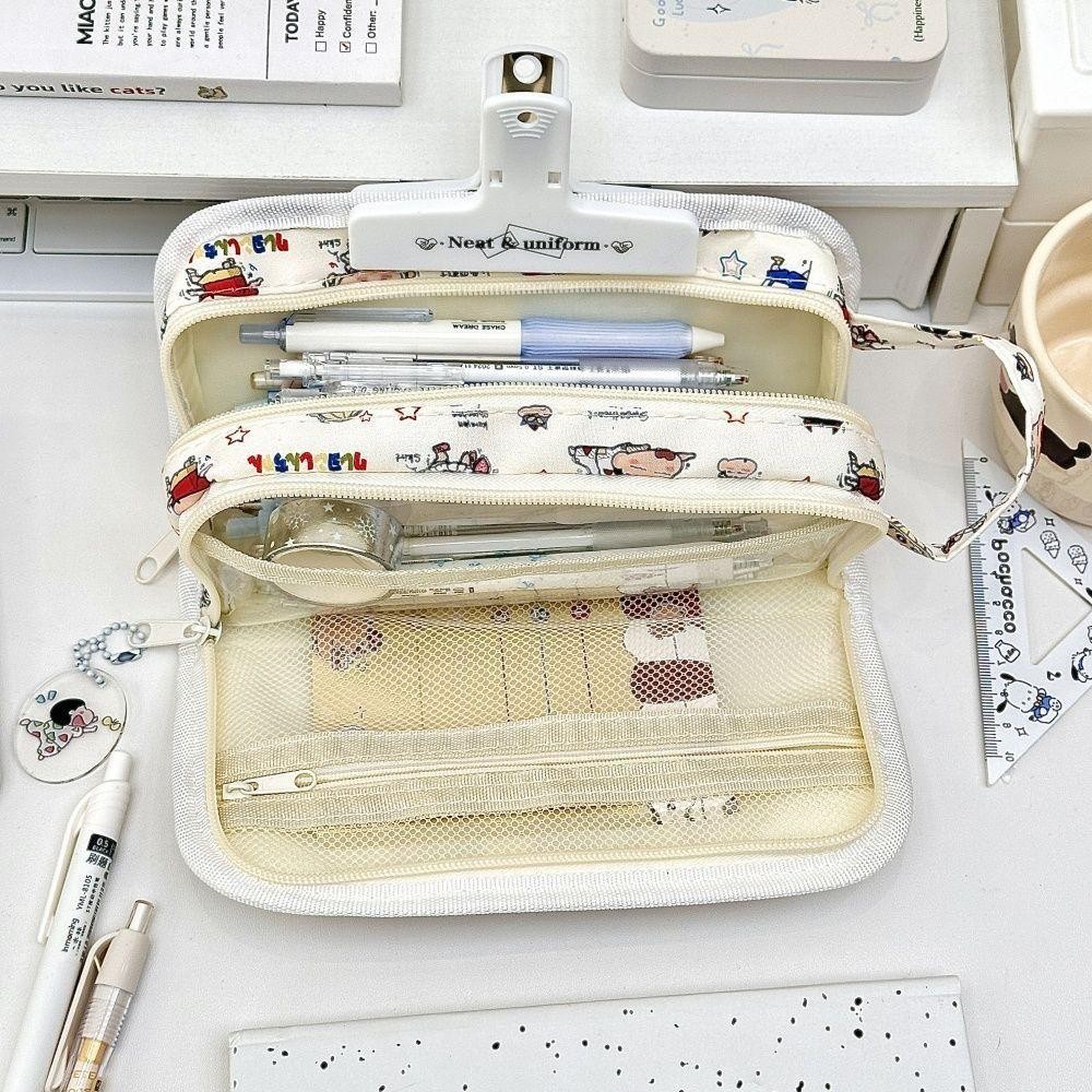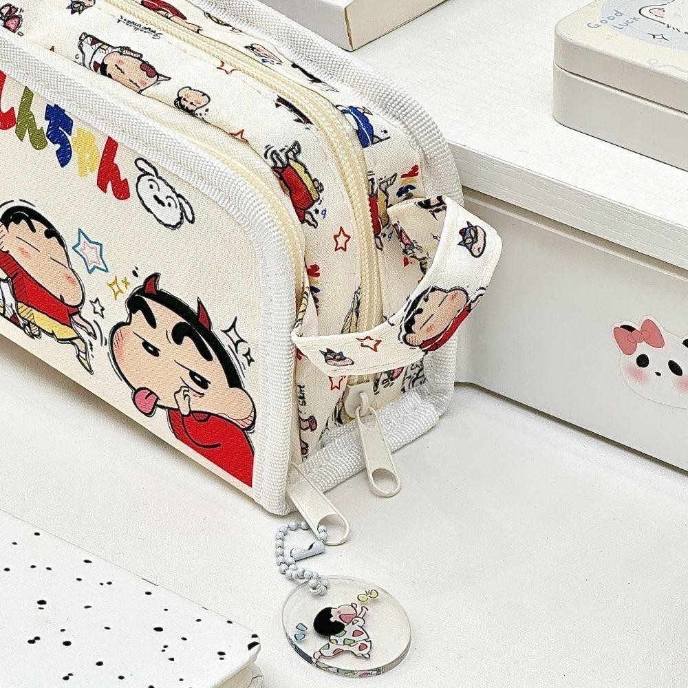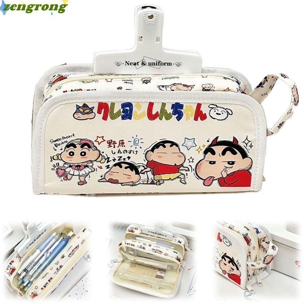 ดินสอ ZENGRONG กระเป๋าปากกาเครยอนชินจังหลายชั้น, กระเป๋าเครื่องเขียนความจุขนาดใหญ่มัลติฟังก์ชั่นนักเรียน