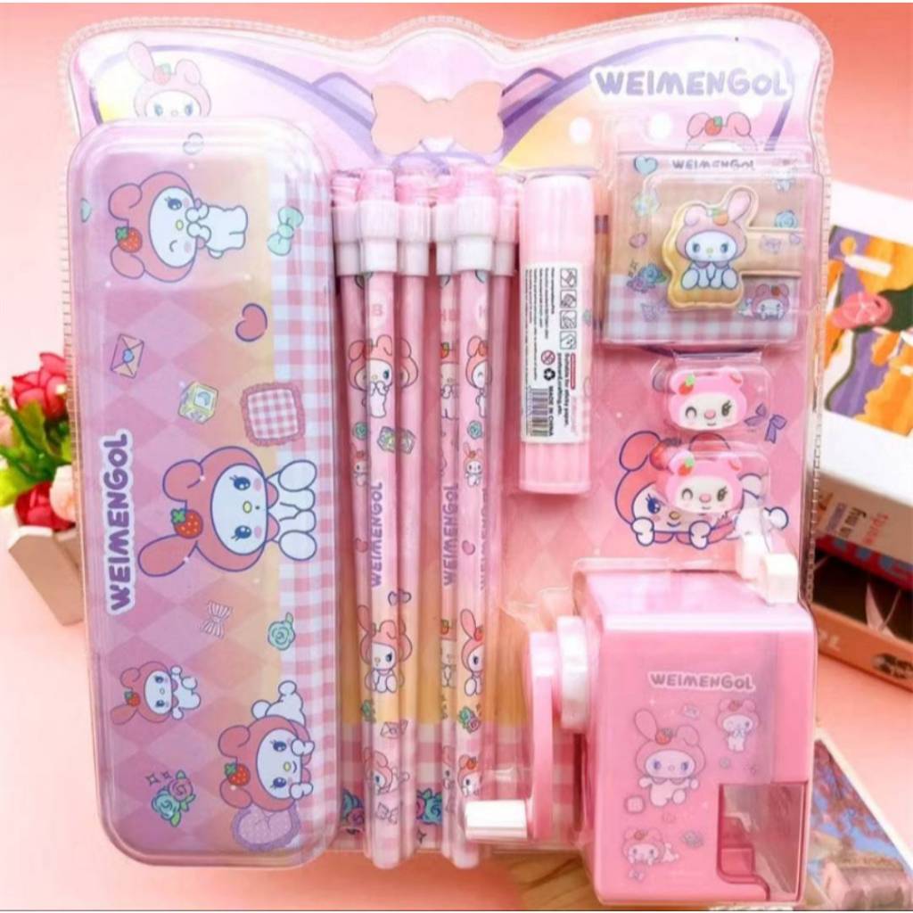 ชุดเครื่องเขียน กล่องดินสอ กบเหลาดินสอ ดินสอ 6 แท่ง+ยางลบ เครื่องเขียน ลายการ์ตูนน่ารัก มีหลายแบบ
