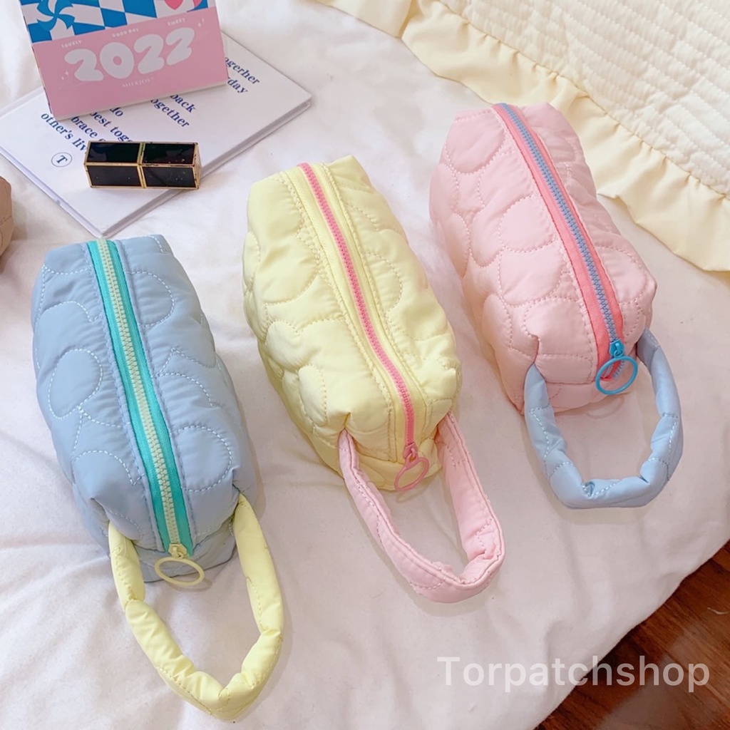 พร้อมส่ง กระเป๋าอเนกประสงค์ เครื่องสำอางค์ ลายดอกไม้ เครื่องเขียน กระเป๋าดินสอ สีหวาน พาสเทล
