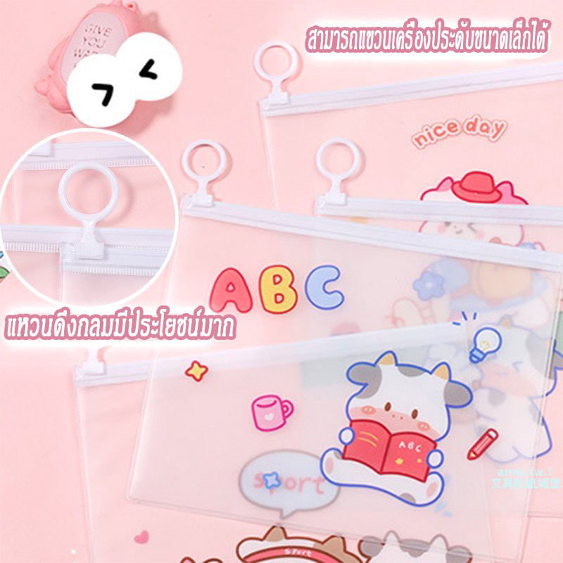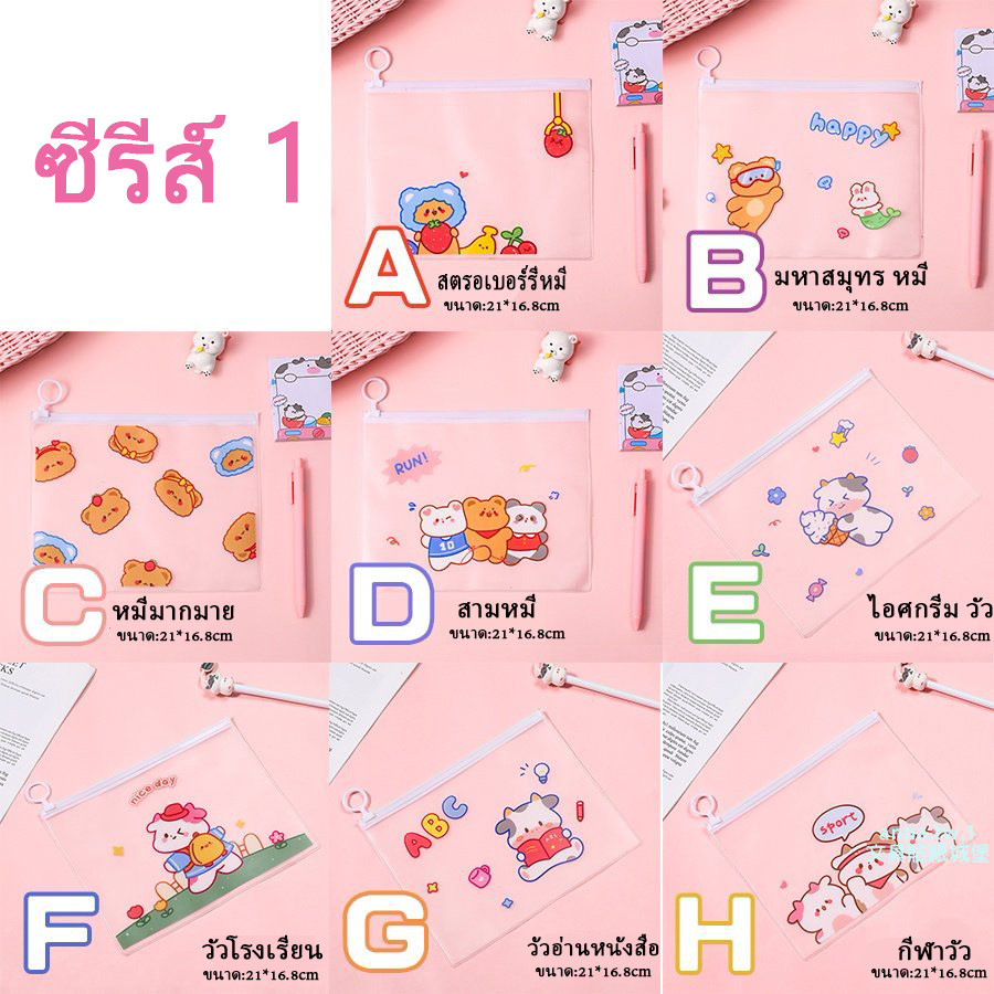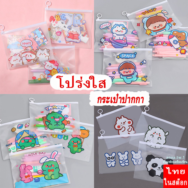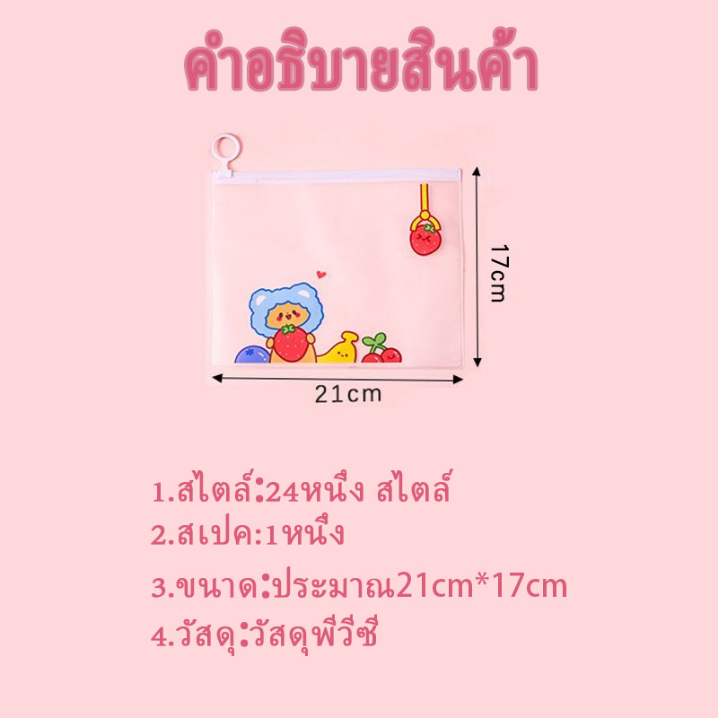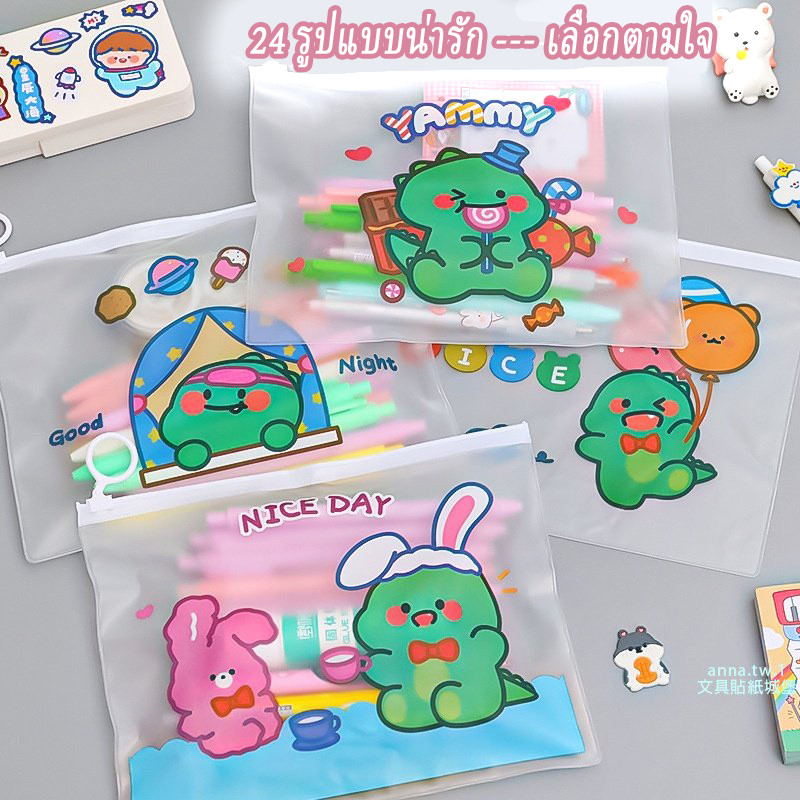 ถุงซิปล็อค กระเป๋าใส กระเป๋าดินสอ ความจุขนาดใหญ่ วัสดุกันน้ำโปร่งใส 24 ชิ้น รูปแบบการ์ตูนน่ารัก อุปกรณ์เครื่องเขียน