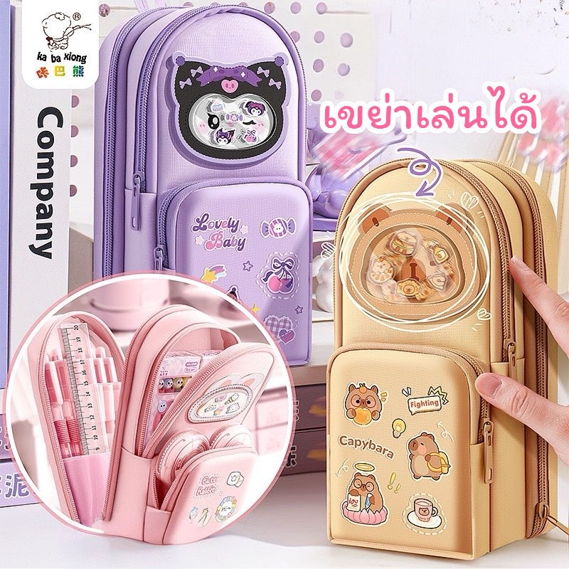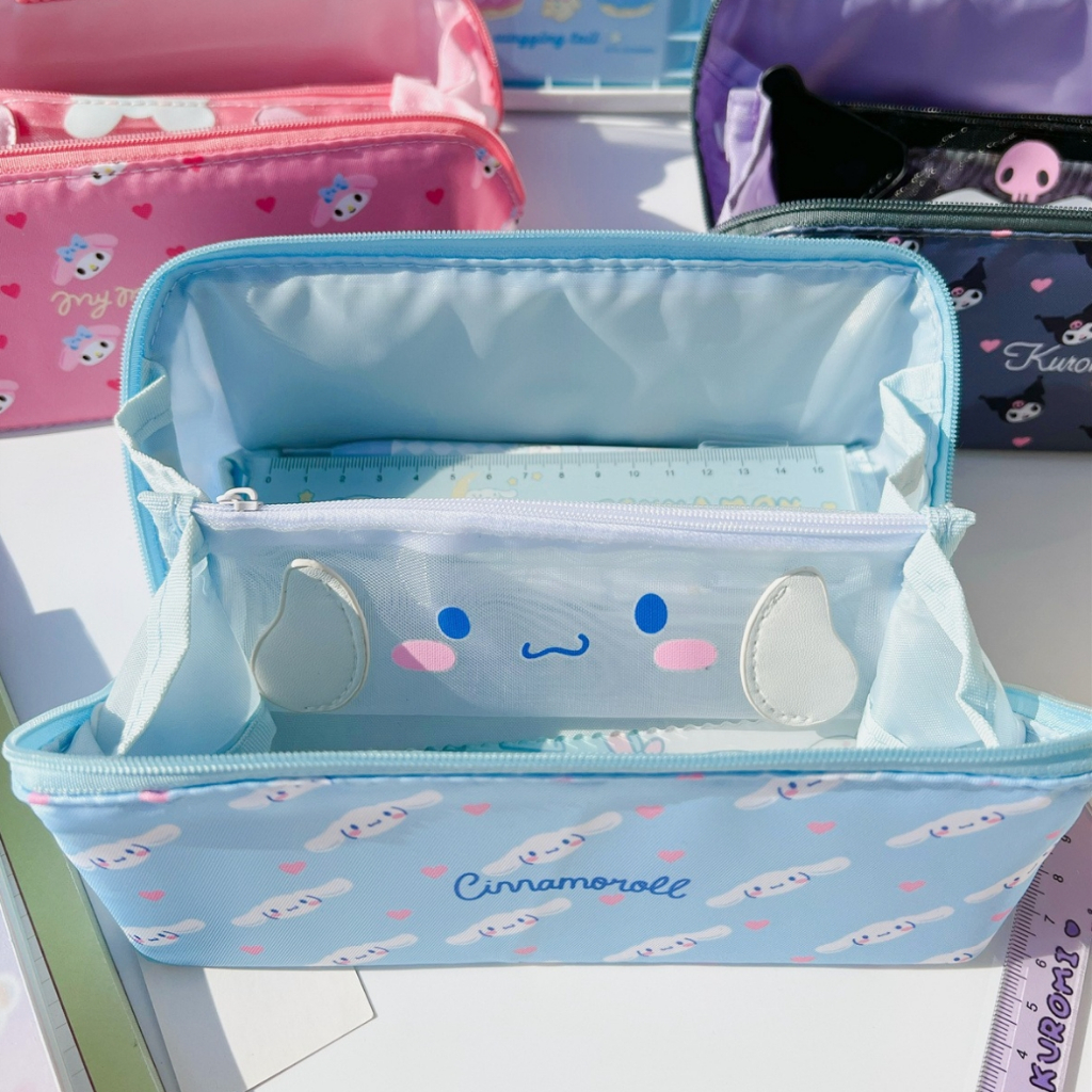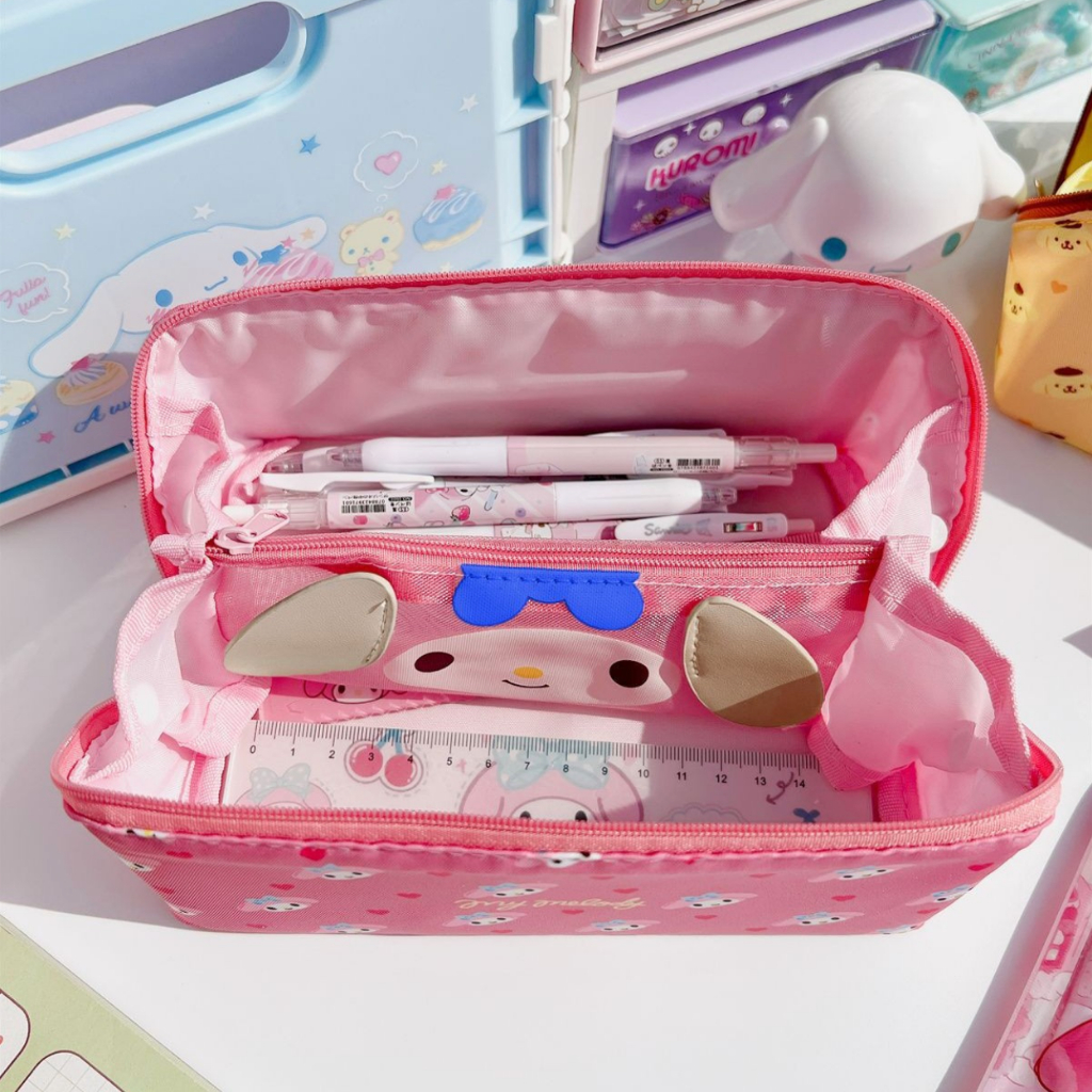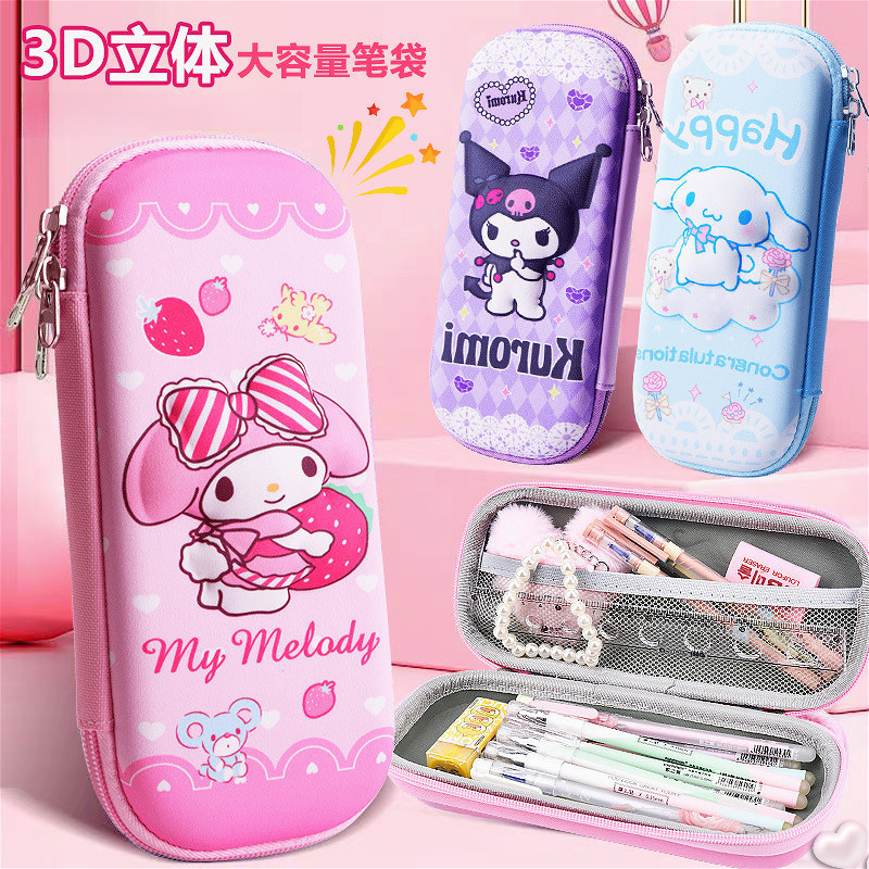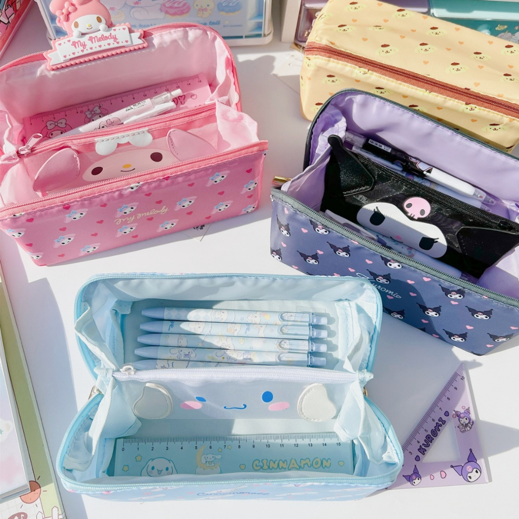 น่ารักการ์ตูน Sanrio กรณีดินสอความจุขนาดใหญ่ capybara Kuromi 3D Melody Cinnamoroll pochacco H ello K Itty กระเป๋าดินสอ