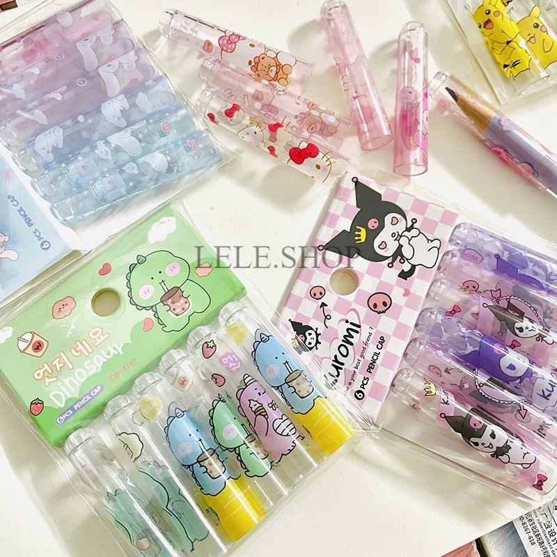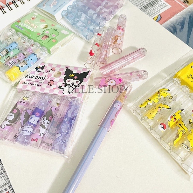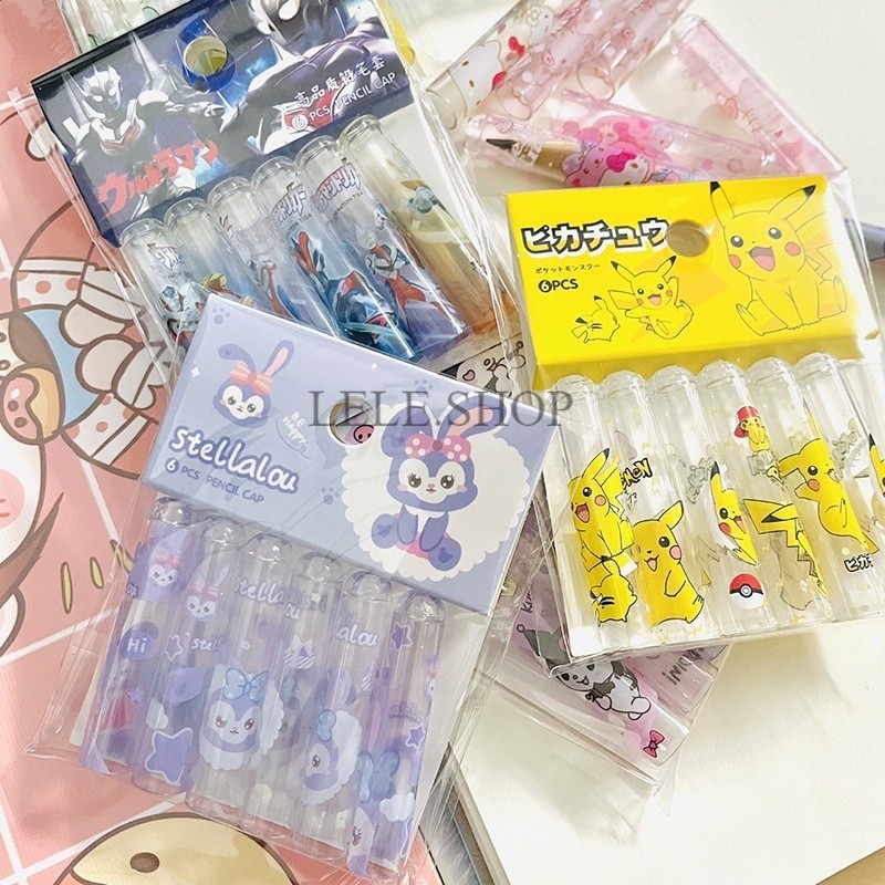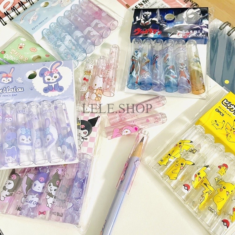 ปลอกดินสอพลาสติก ลายการ์ตูน 6ชิ้น/pack พร้อมส่งในไทย
