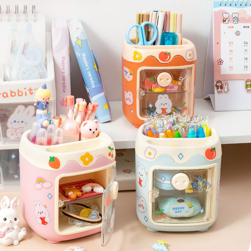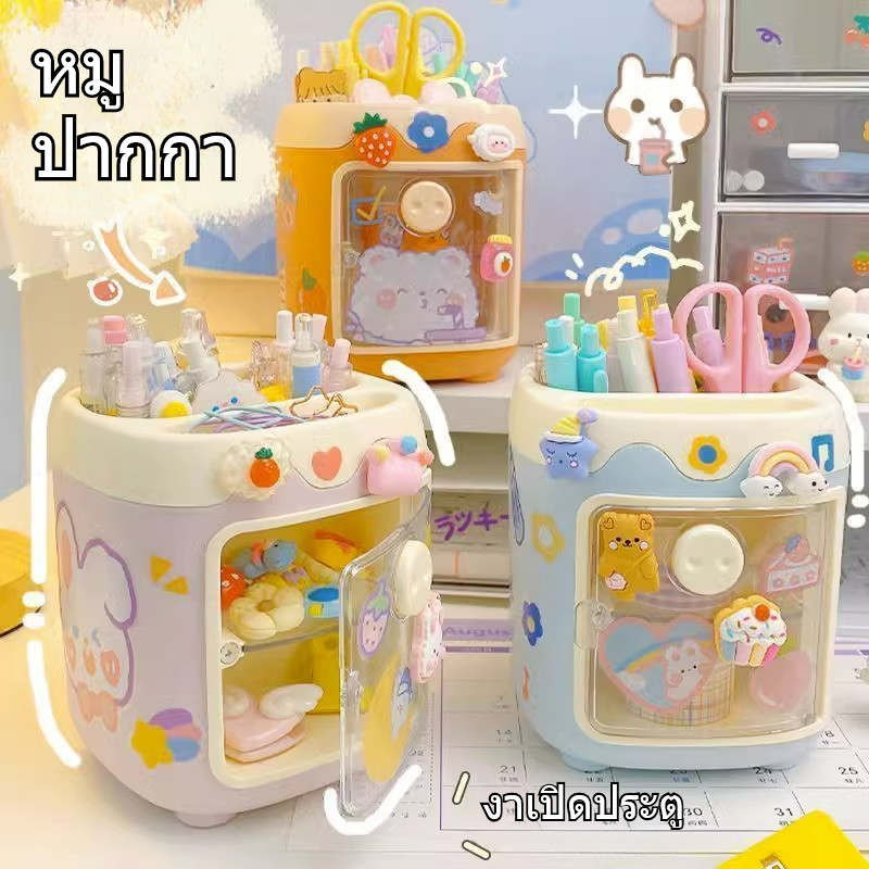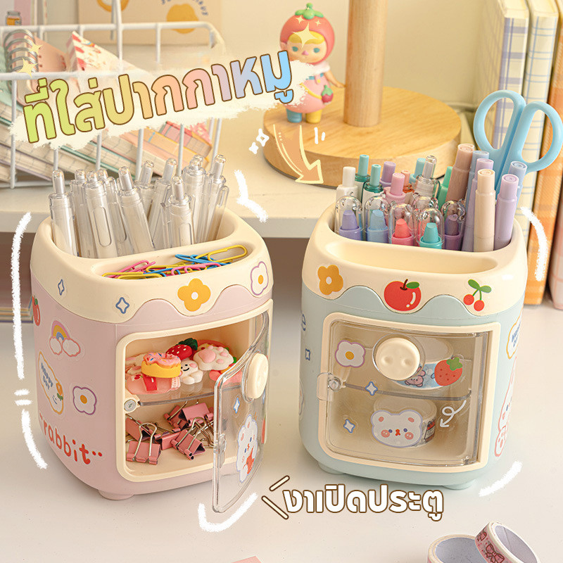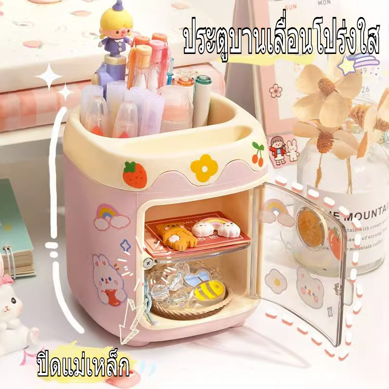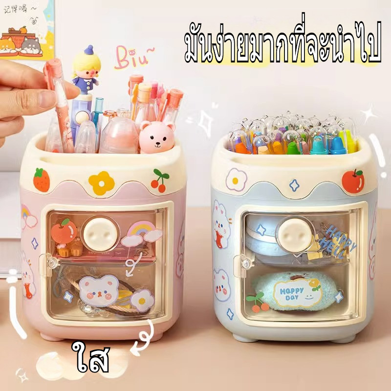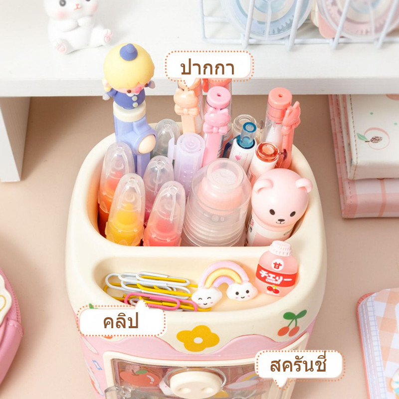 พร้อมจัดส่ง กล่องใส่ปากกา ที่ใส่ปากกา ส่งสติกเกอร์ 3D กล่องเก็บของ ชั้นเก็บเครื่องเขียน หมุนได้ น่ารัก