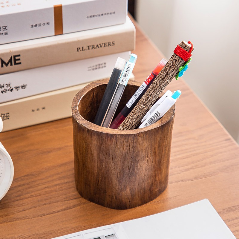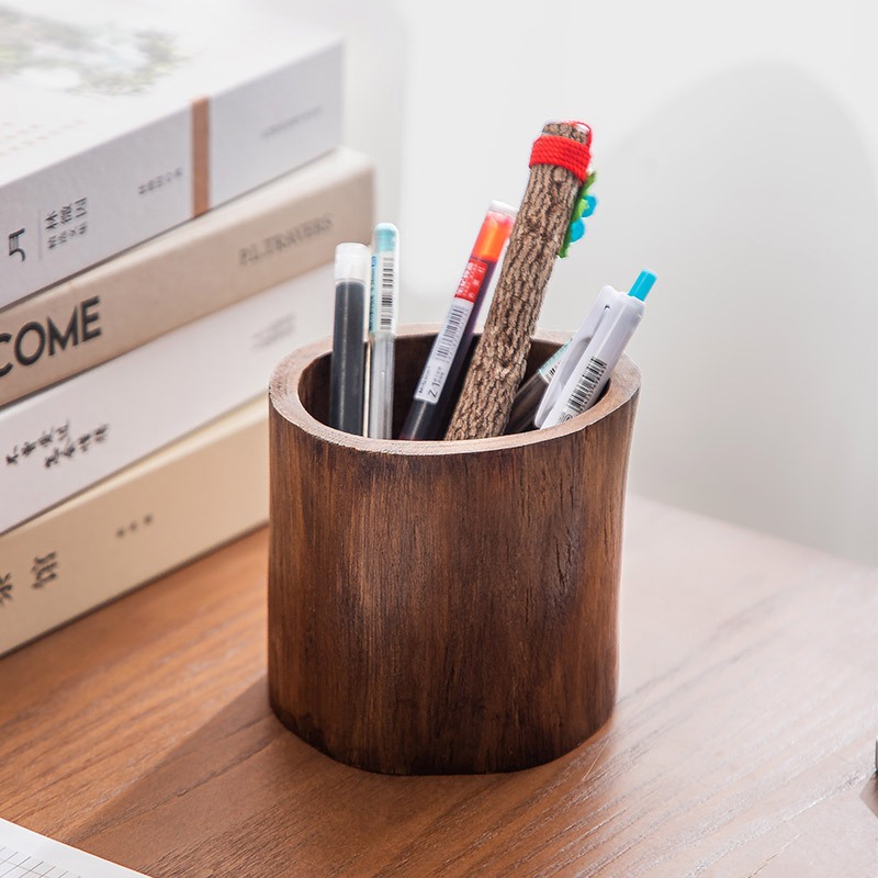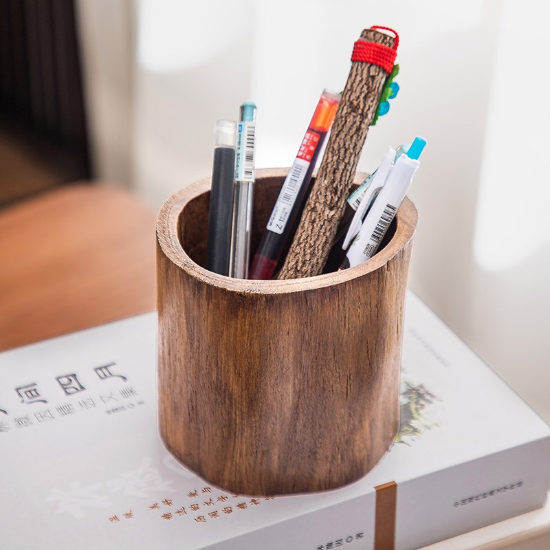 ที่ใส่ปากการากไม้ กล่องไม้ใส่ปากกา กล่องใส่เครื่องเขียน ทำจากต้นสัก สำหรับห้องหนังสือ สำนักงาน