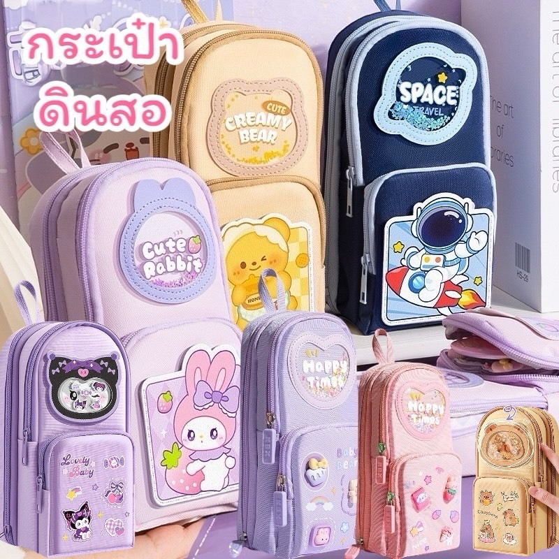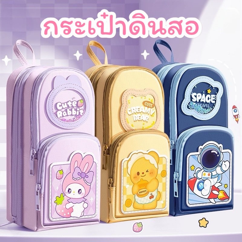 พร้อมส่ง? กระเป๋าดินสอ จุได้เยอะ ลายการ์ตูน กระเป๋าอเนกประสงค์ ทรงเหลี่ยม ใส่เครื่องเขียน
