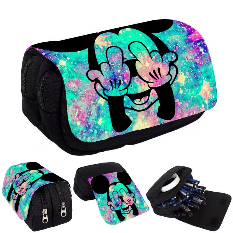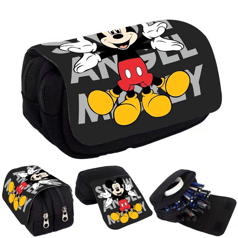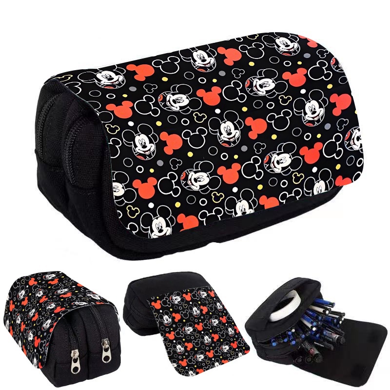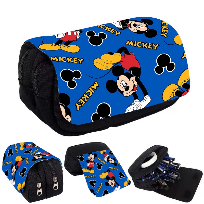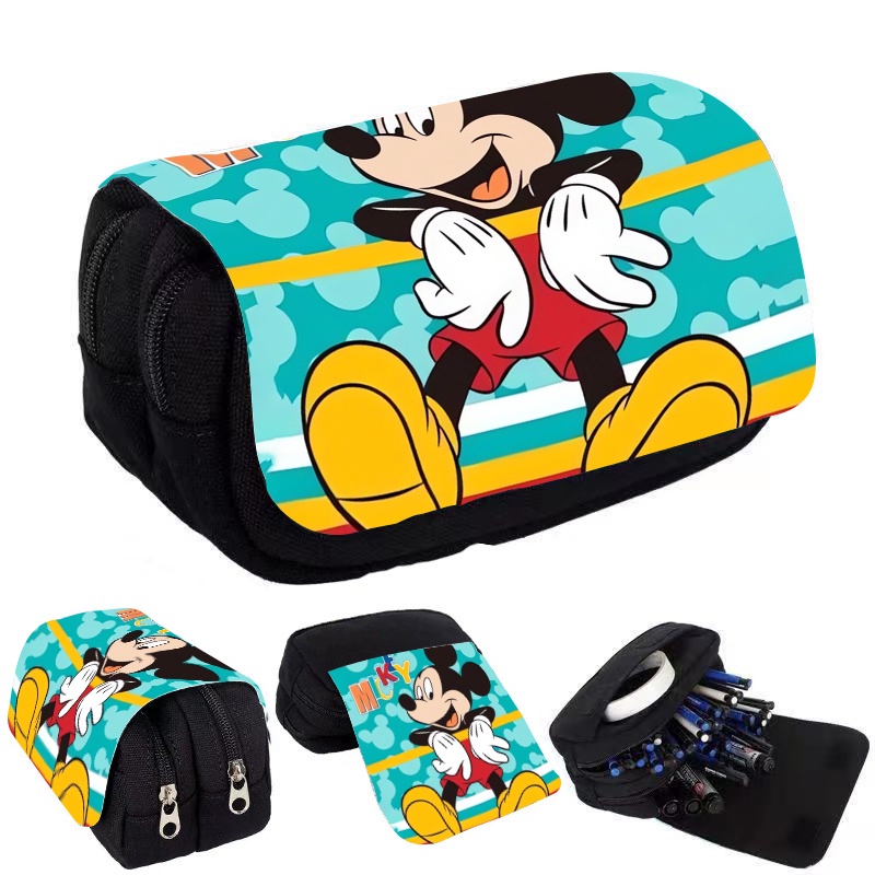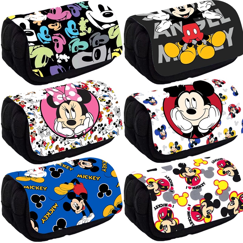 กระเป๋าใส่ปากกา จุของได้เยอะ แบบฝาพับ พิมพ์ลายการ์ตูนมิกกี้ มินนี่เมาส์ สองชั้น คุณภาพสูง ที่ทนทาน กันน้ํา สําหรับนักเรียนประถม มัธยมต้น และมัธยมต้น