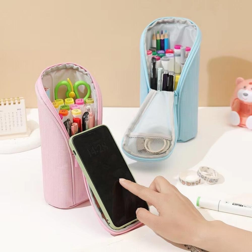 กระเป๋าปากกานักเรียน ดอกกุหลาบ กล่องดินสอแบบตั้งได้ผ้าใบที่วางโทรศัพท์มือถือความจุขนาดใหญ่อุปกรณ์การเรียน