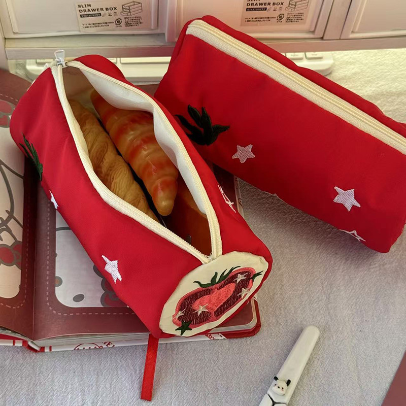 กระเป๋าใส่ดินสอลายแอปเปิ้ลน่ารักกระเป๋าใส่ปากกากระบอกแบบพกพากระเป๋าใส่ปากกานักเรียน จําเป็น