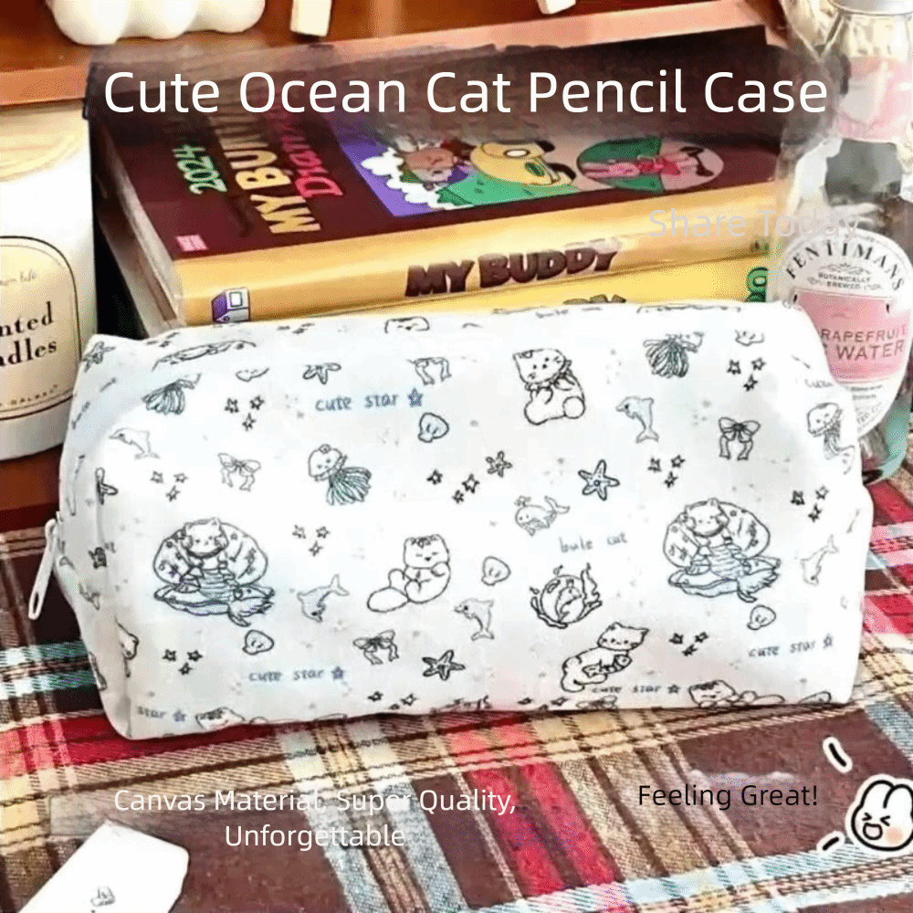 กระเป๋าเครื่องเขียน โจเวนตี้, กระเป๋าใส่ปากกาความจุขนาดใหญ่แมวมหาสมุทร, ดินสอมัลติฟังก์ชั่นน่ารักสําหรับสํานักงานโรงเรียน
