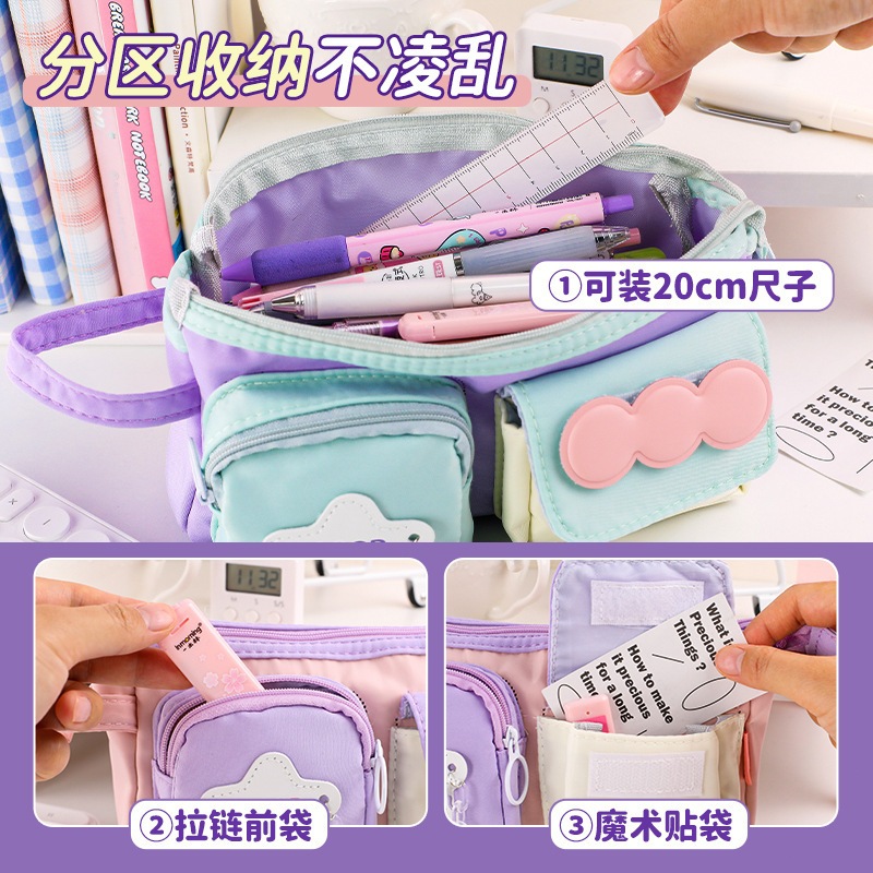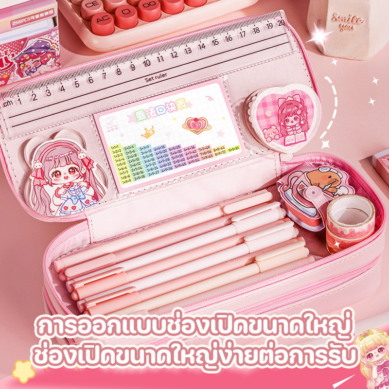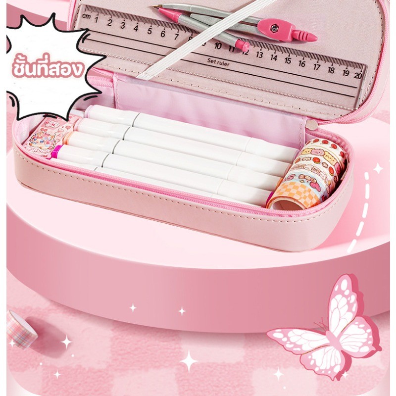 กระเป๋าเครื่องเขียน กล่องดินสอนักเรียน กระเป๋าใส่ดินสอความจุขนาดใหญ่ การจัดเก็บแบบแบ่งช่อง