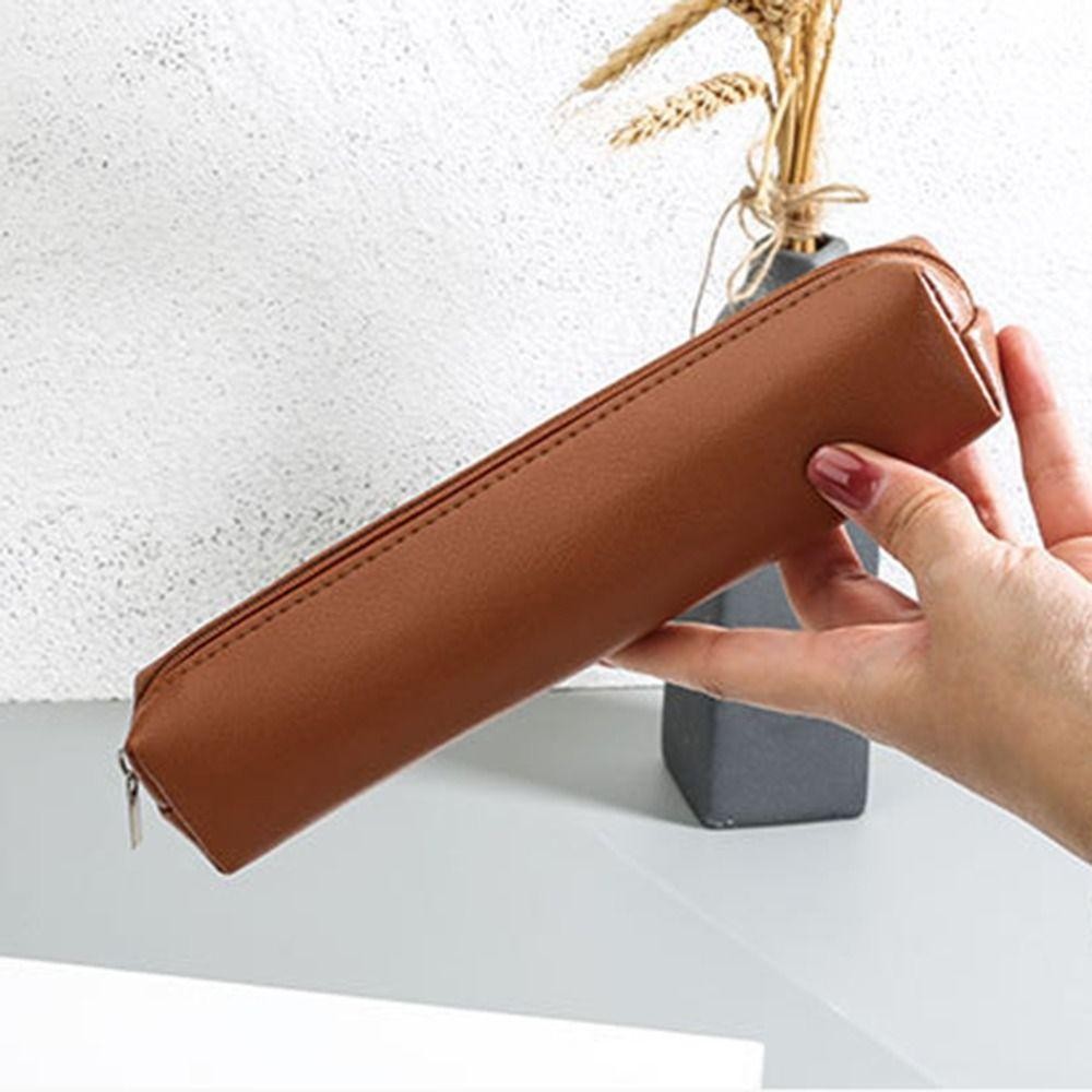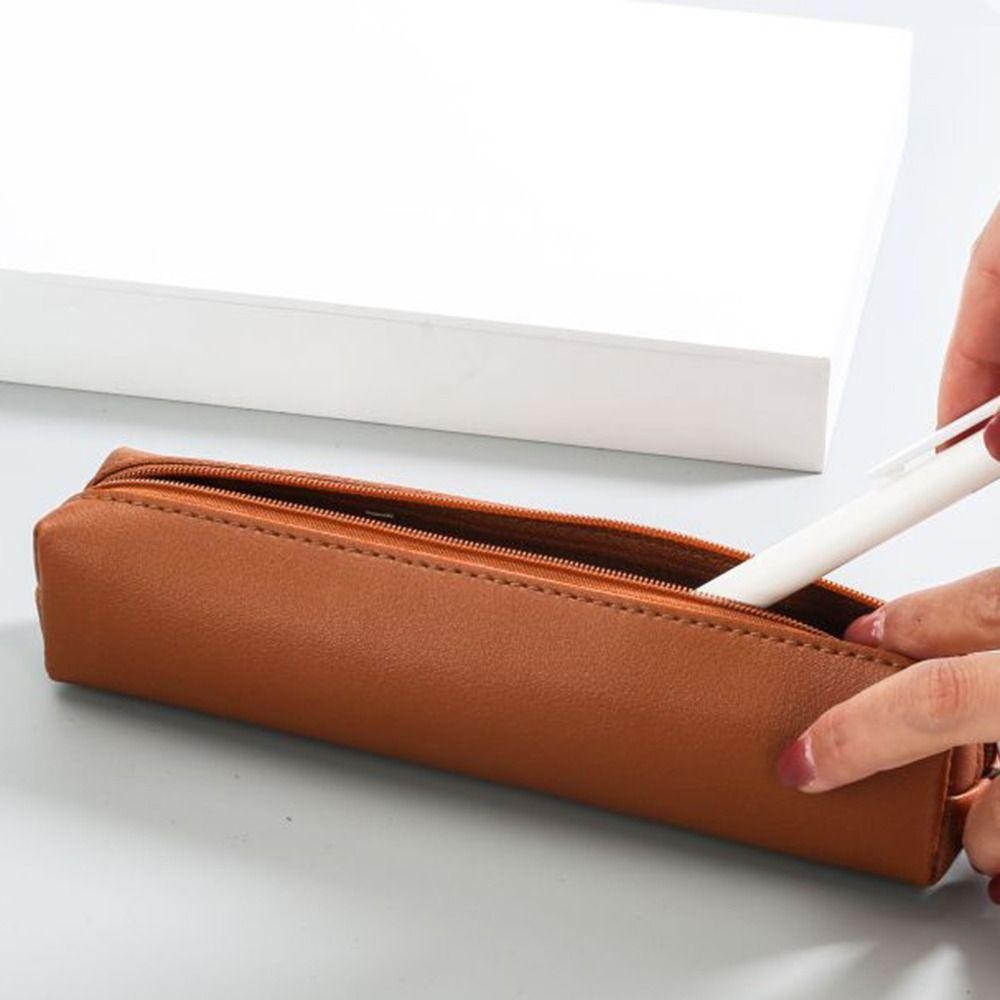 กระเป๋าปากกา LONGE, กระเป๋าเก็บของป้องกันสิ่งสกปรกแบบเรียบง่าย, ดินสอความจุขนาดใหญ่หนัง PU แฟชั่น