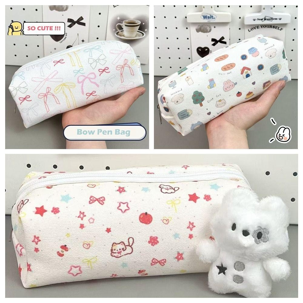 กระเป๋าใส่ปากกา ดอกกุหลาบ ความจุขนาดใหญ่การ์ตูนแมวสุนัขดินสอ ,โบว์น่ารักมัลติฟังก์ชั่เครื่องเขียนออแกไนเซอร์นักเรียน