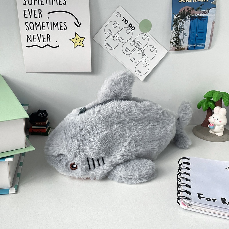 กระเป๋าใส่ดินสอลายฉลามน่ารัก เครื่องเขียนนักเรียน อุปกรณ์การเรียน ตุ๊กตาสุดน่ารัก กระเป๋าเก็บของสำหรับกลับไปโรงเรียน กระเป๋าใส่ปากกา เครื่องเขียน -AME1
