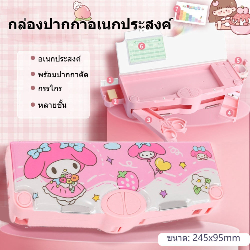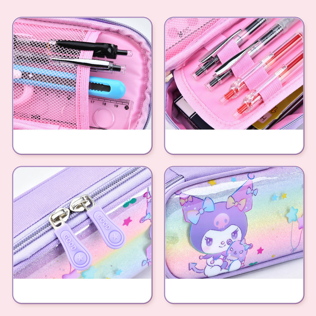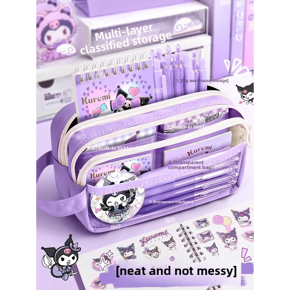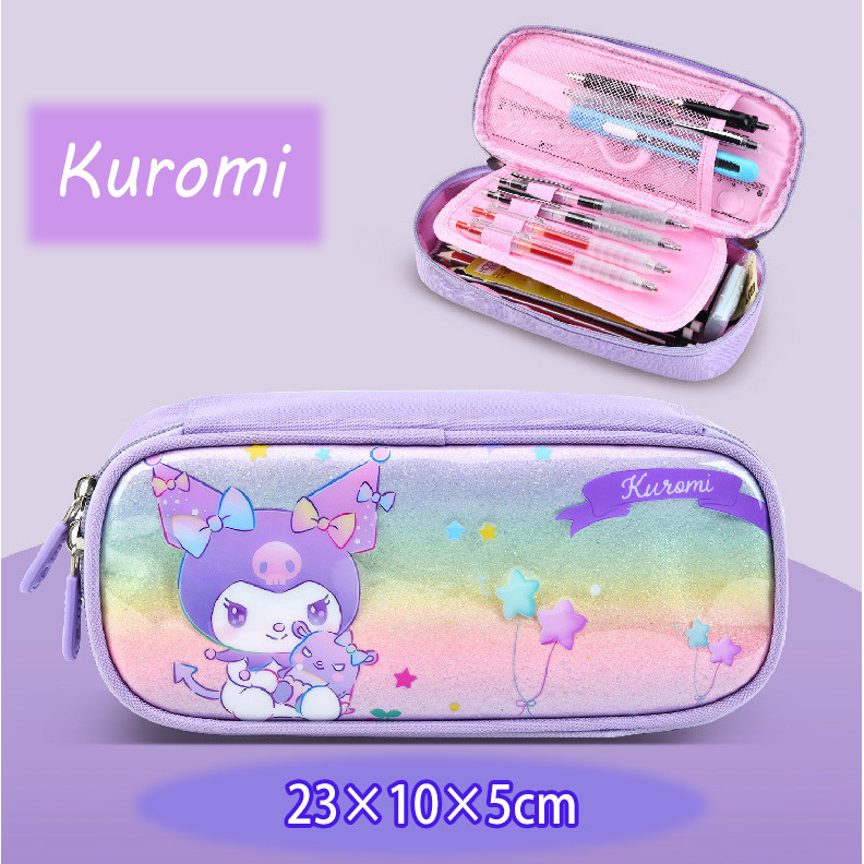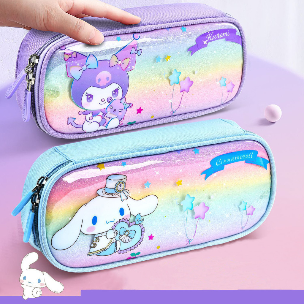 กล่องดินสอ Kuromi Sanrio My Melody Cinnamoroll นักเรียนสองชั้นกล่องดินสอความจุขนาดใหญ่กระเป๋าดินสอเด็ก