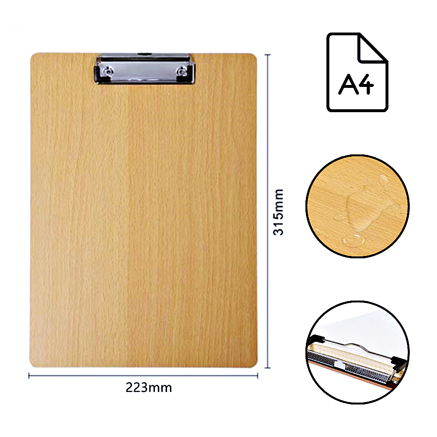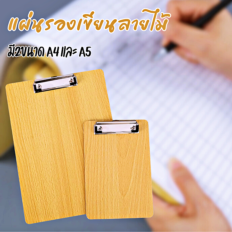 (KTS)กระดานไม้คลิปบอร์ด/กระดานอัดพร้อมคลิป เรียบหน้าเดียว A2 40×60 ซม. PK พื้นน้ำตาล!!