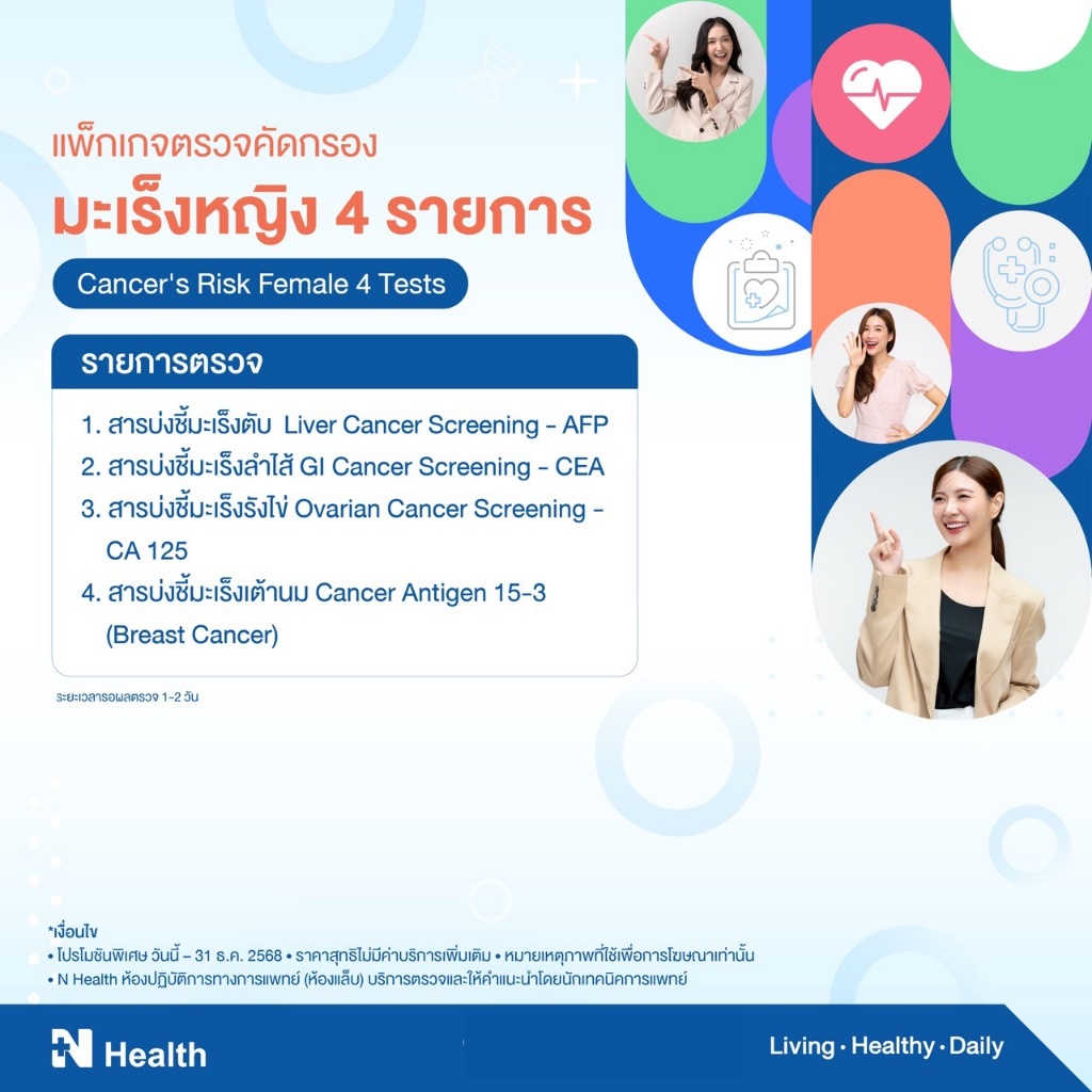 [E-Voucher] แพ็กเกจตรวจคัดกรองมะเร็งหญิง 4 รายการ (Cancer’s Risk Female 4 Tests) – N Health