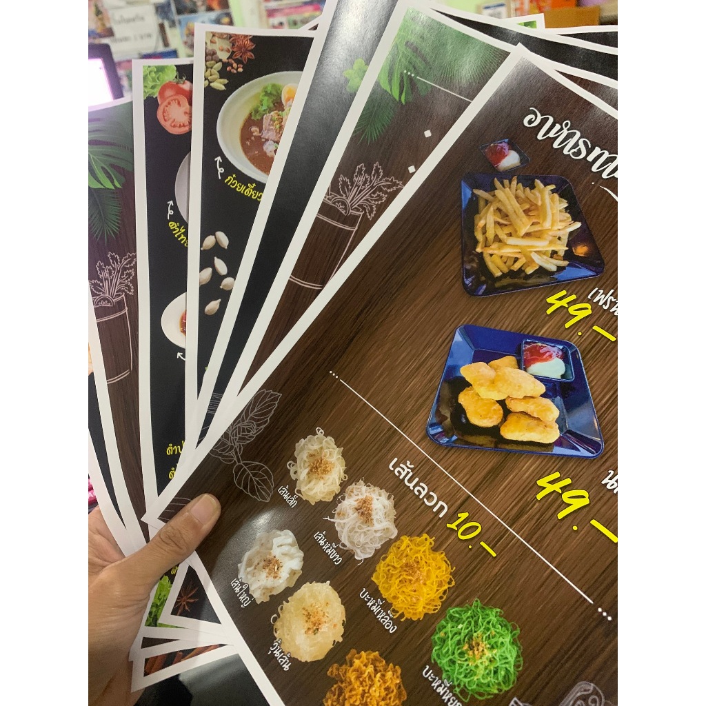 (สอบถามก่อนสั่งซื้อ) รับปริ้นเอกสารสี เมนูอาหาร พร้อมเคลือบแข็งขนาด A4, A5