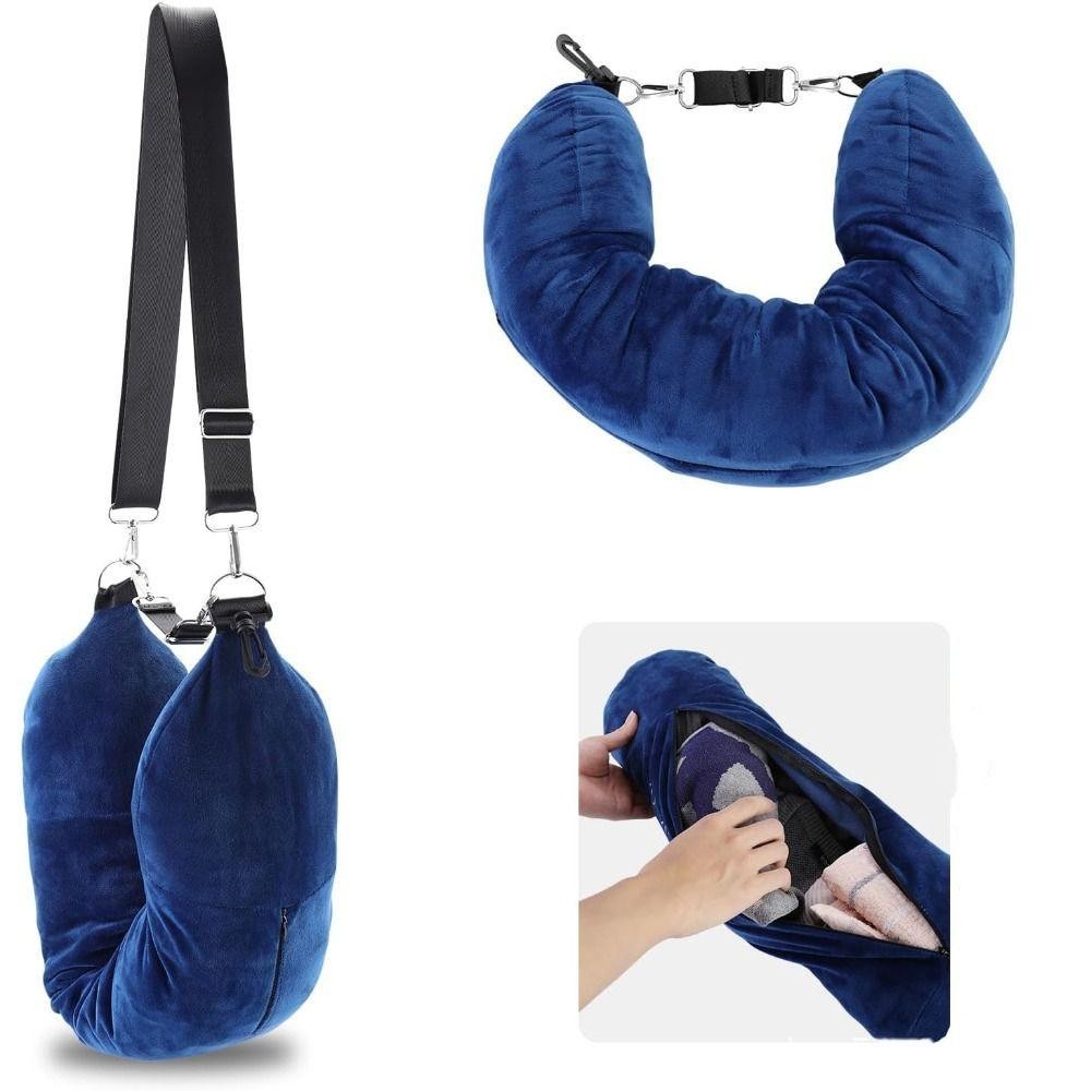 ANHUI หมอนรองคอสําหรับเดินทางแบบเติมได้, ผ้าฝอยนุ่มพิเศษ, พกพาถุงเก็บปลอกหมอนกันน้ําแบบพกพา
