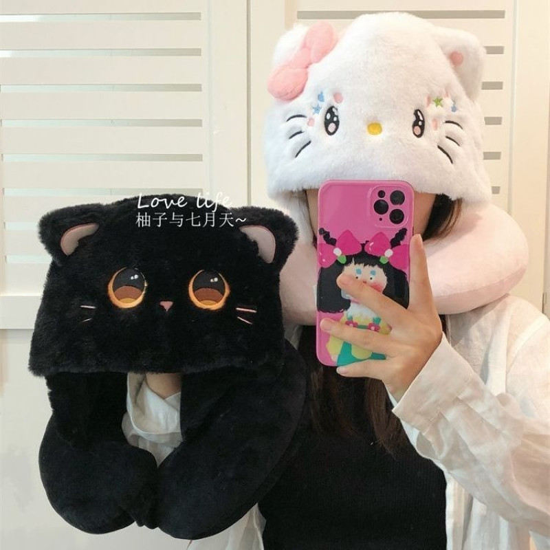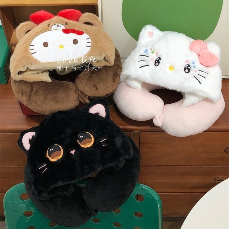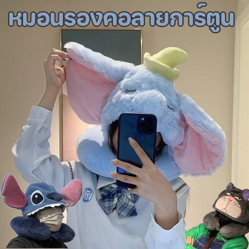 COD[ขายร้อน] หมอนรองคอ ตัวยู พร้อมฮู้ด หมอนรองคอลายการ์ตูน ลายน่ารัก นุ่มสบาย พกพาสะดวก เดินทางงีบ