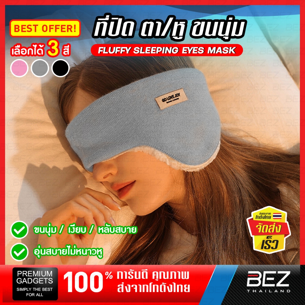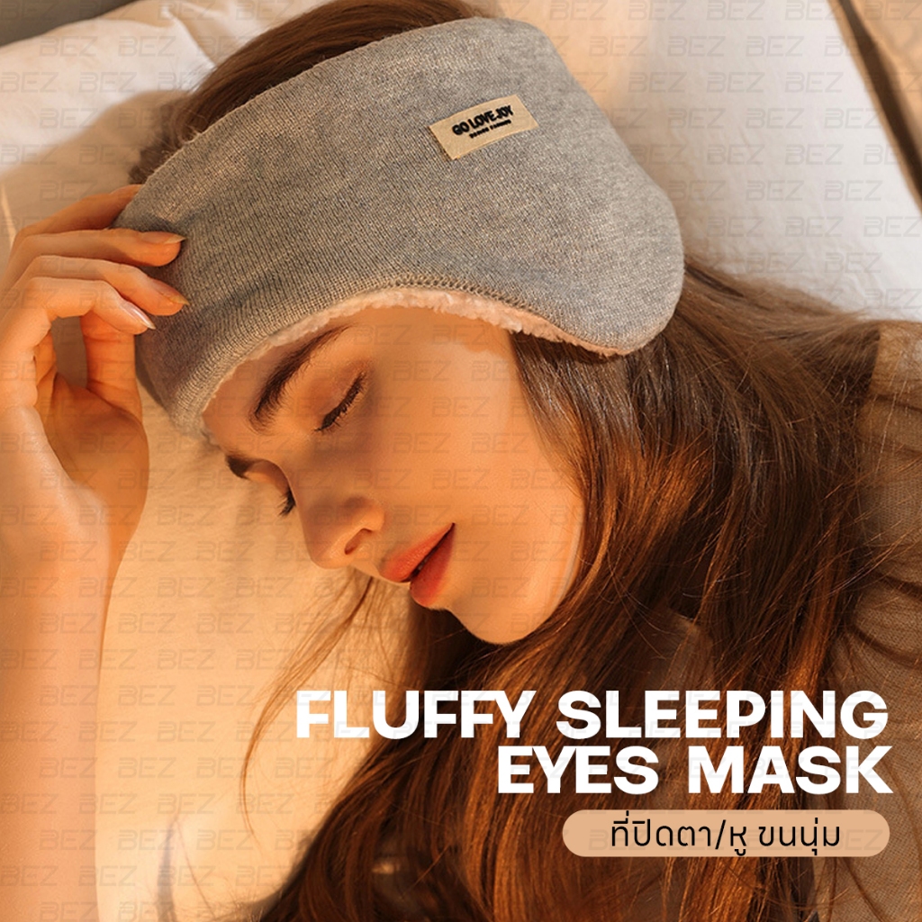 BEZ ผ้าปิดตานอน ขนนุ่ม ที่ปิดตาขนนุ่ม ปิดหู ไหมพรมคุณภาพดี กันเสียงรบกวน บล็อกแสง บล็อกเสียง นอนหลับสนิท