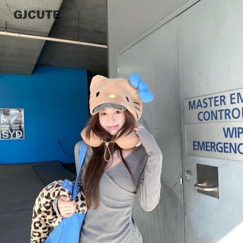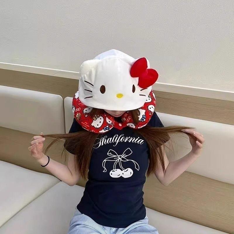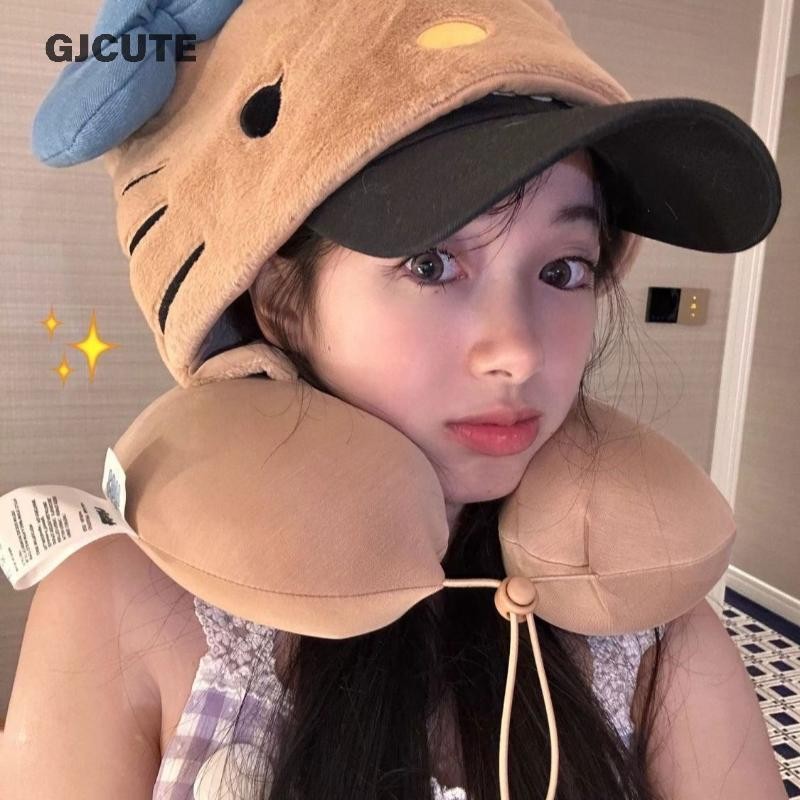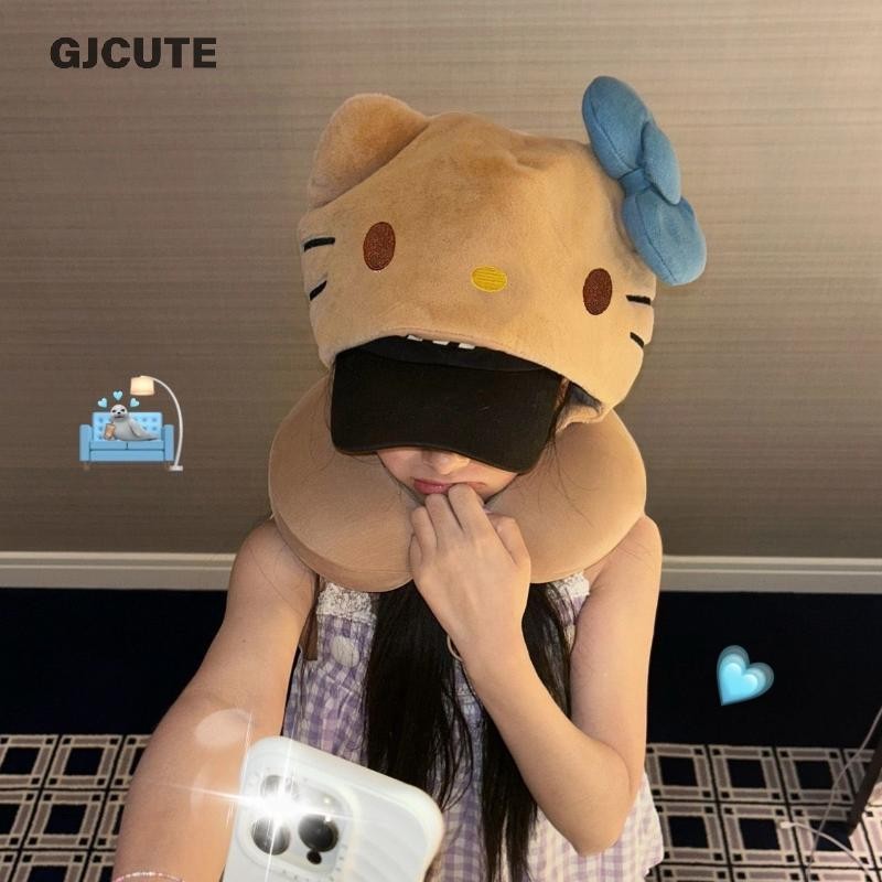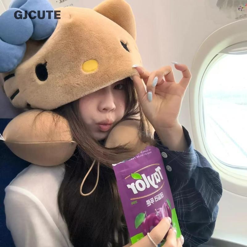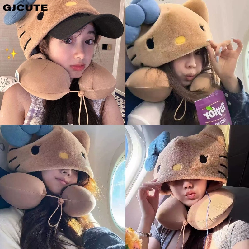 GJCUTE Hello Kitty หมอนรองคอหมอนท่องเที่ยวสําหรับเครื่องบินรถไฟรถ Soft Plush Sleeping สนับสนุนปรับ Hood ของขวัญน่ารัก WTD