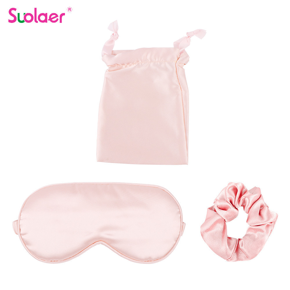 Sleep Mask Silk Eye Mask Soft Relax Eyes & Girl Elastic Silk Scrunchie ผู ้ หญิงซาตินผม Bands