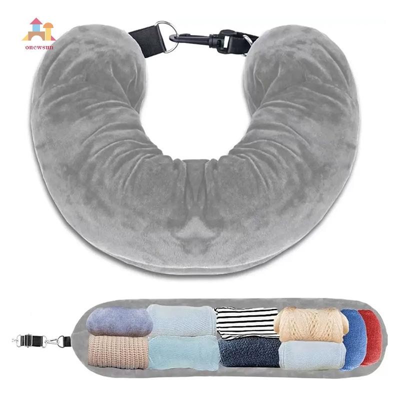 Onew Fillable Travel Neck Pillow Case Carryable Storage Bag Airplane Cushion Travel Neck Pillow Self-filling Portable Travel Pillow sun