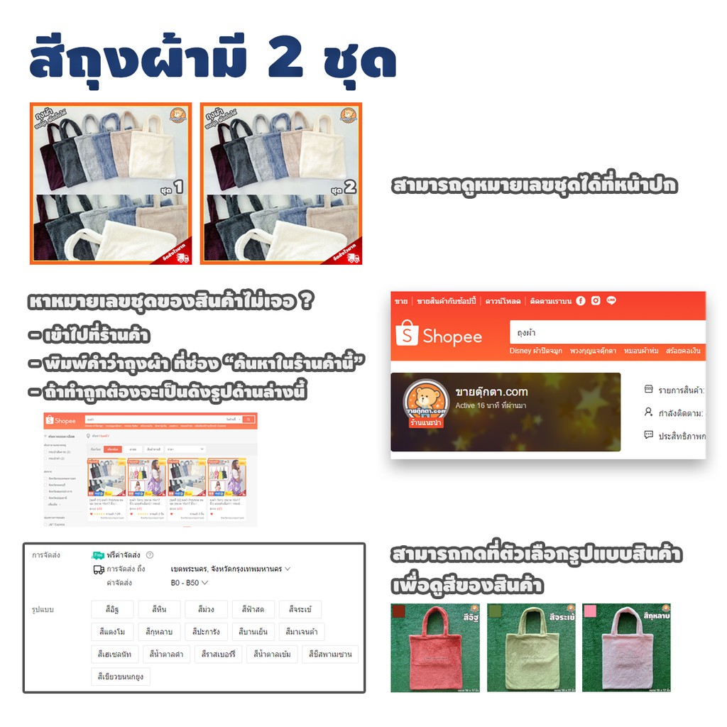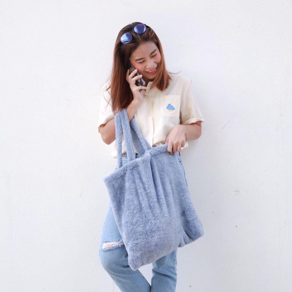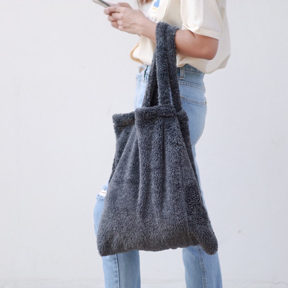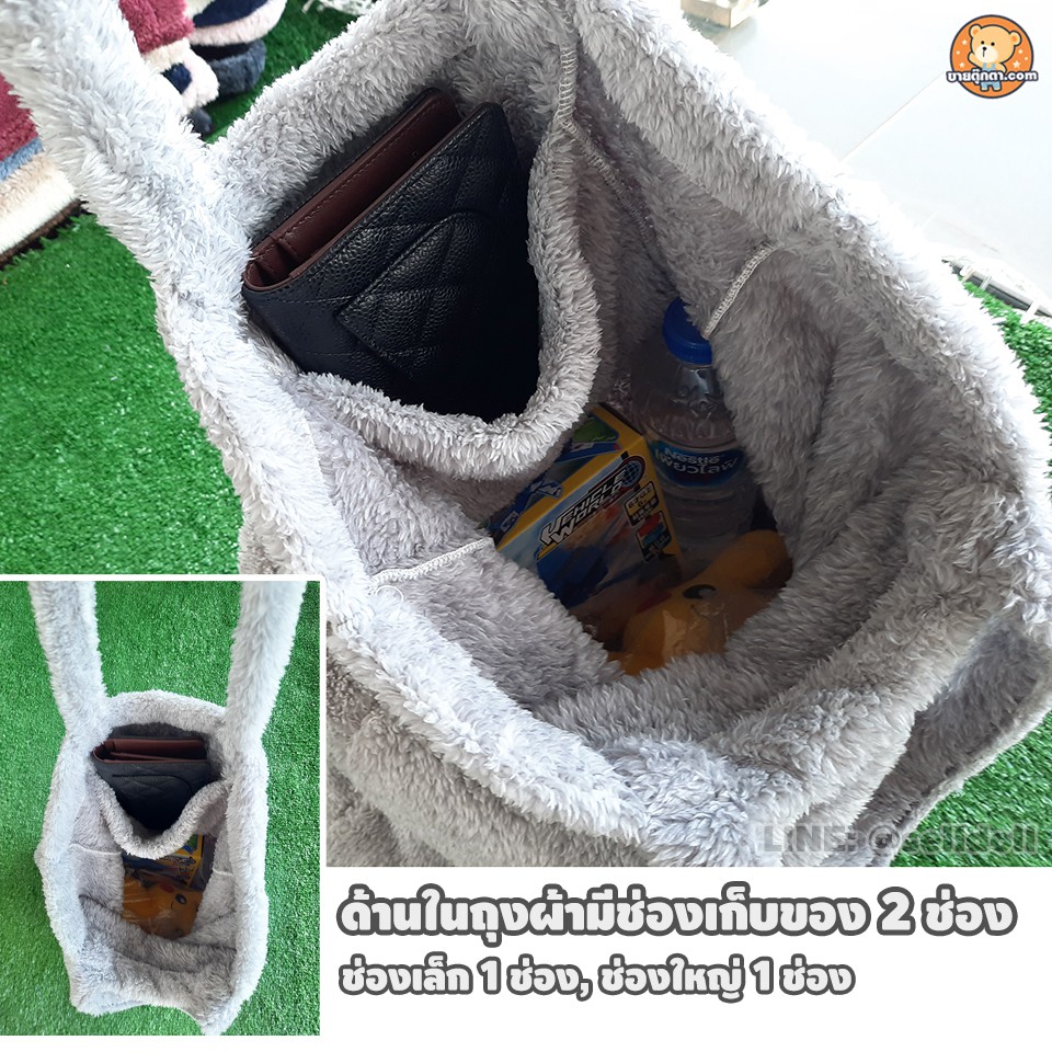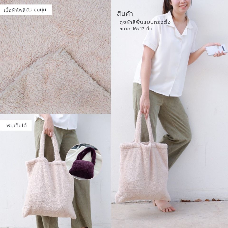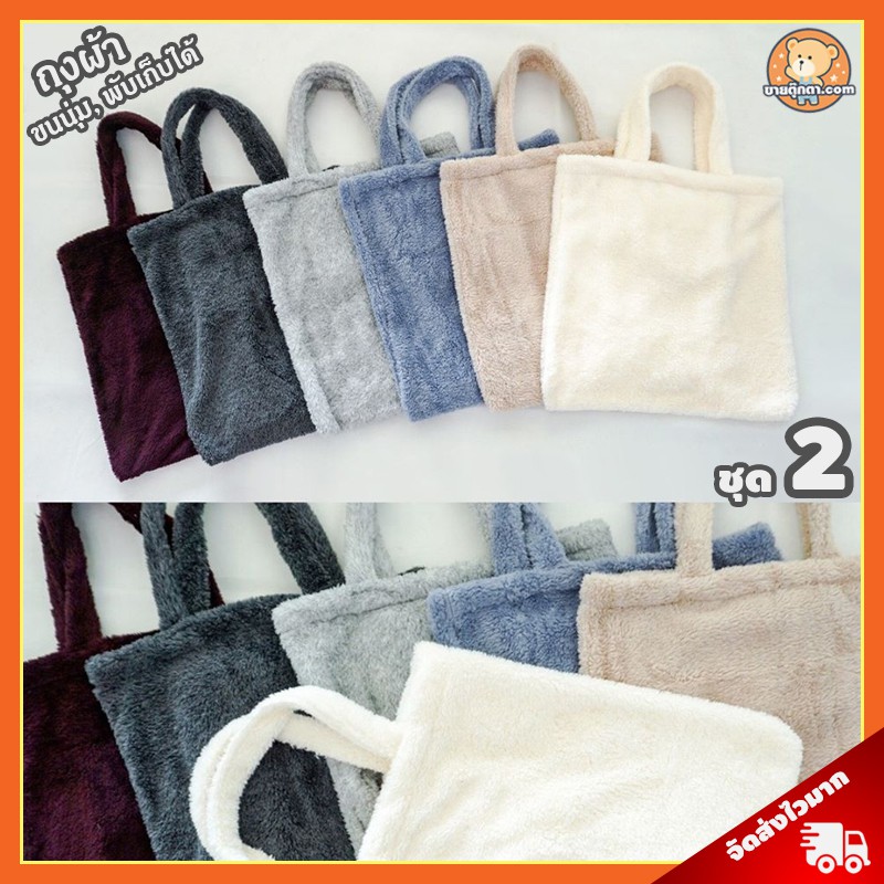 [ชุดที่ 02] ถุงผ้า Polyboa ขนนุ่ม (ขนาด 16×17 นิ้ว) / กระเป๋าสะพาย พับเก็บได้