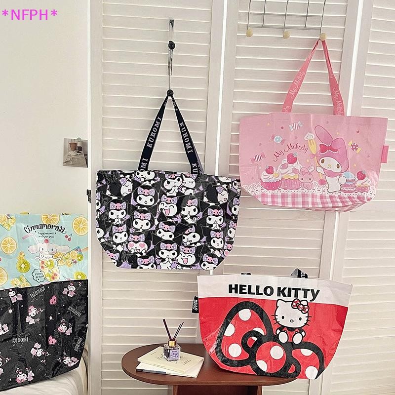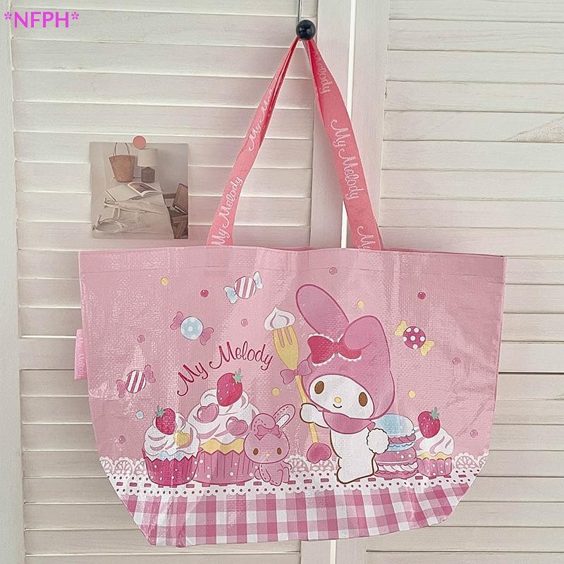 Nfph>sanrio Hello Kitty กระเป๋าช้อปปิ้งพับได้ My Melody Kuromi Cinnamoroll กระเป๋าโท้ทความจุขนาดใหญ่แบบพกพาเป็นมิตรกับสิ่งแวดล้อมกระเป๋าแบบใช้ซ้ําได้ใหม่