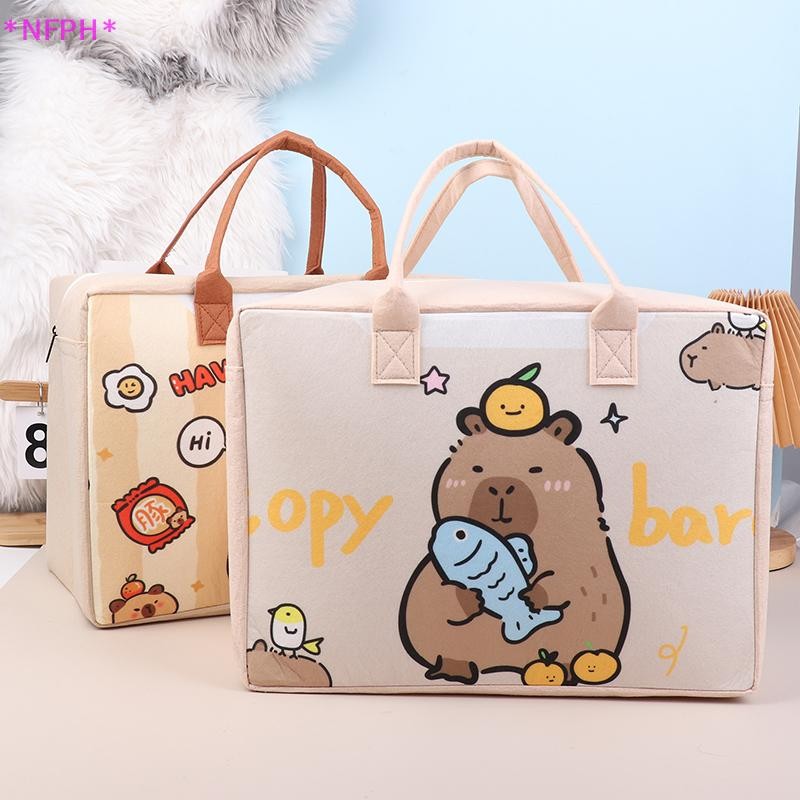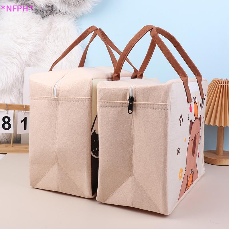 Nfph> 1ชิ้นผู้หญิงรู้สึกกระเป๋าถือน่ารักแบบพกพาความจุขนาดใหญ่ถุงเก็บเดินทางการ์ตูนพิมพ์ถุงสิริใหม่