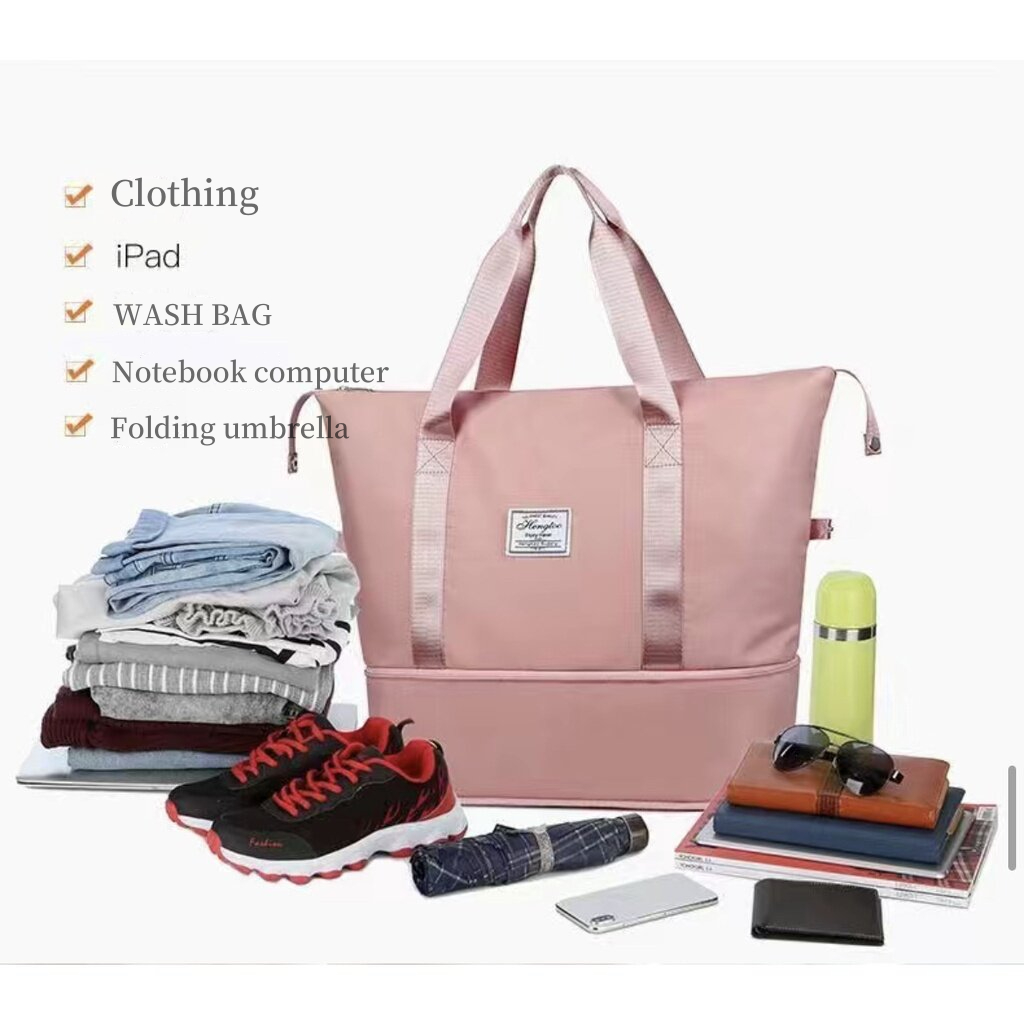 Hanaso กระเป๋าฟิตเนส Sport Bag ใส่ของกีฬา สำหรับเดินทางพกพา พับได้ มีซิป แบบหิ้ว 65 ลิตร
