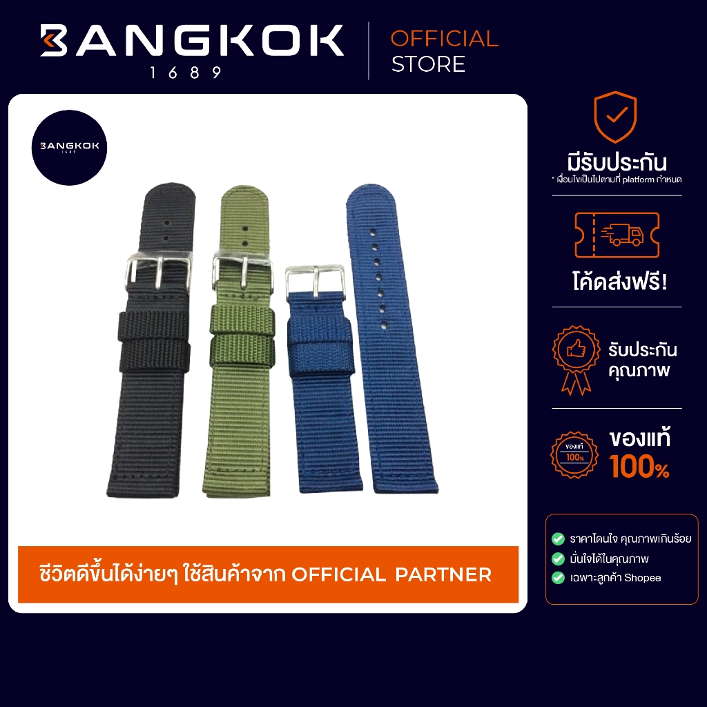 ??????? สายนาฬิกา สายผ้าไนล่อนเกรดพรีเมี่ยม ผ้านุ่ม ด้ายเย็บสวย หัวสายสแตนเลสเงา ขนาด 18 20 22 มิล