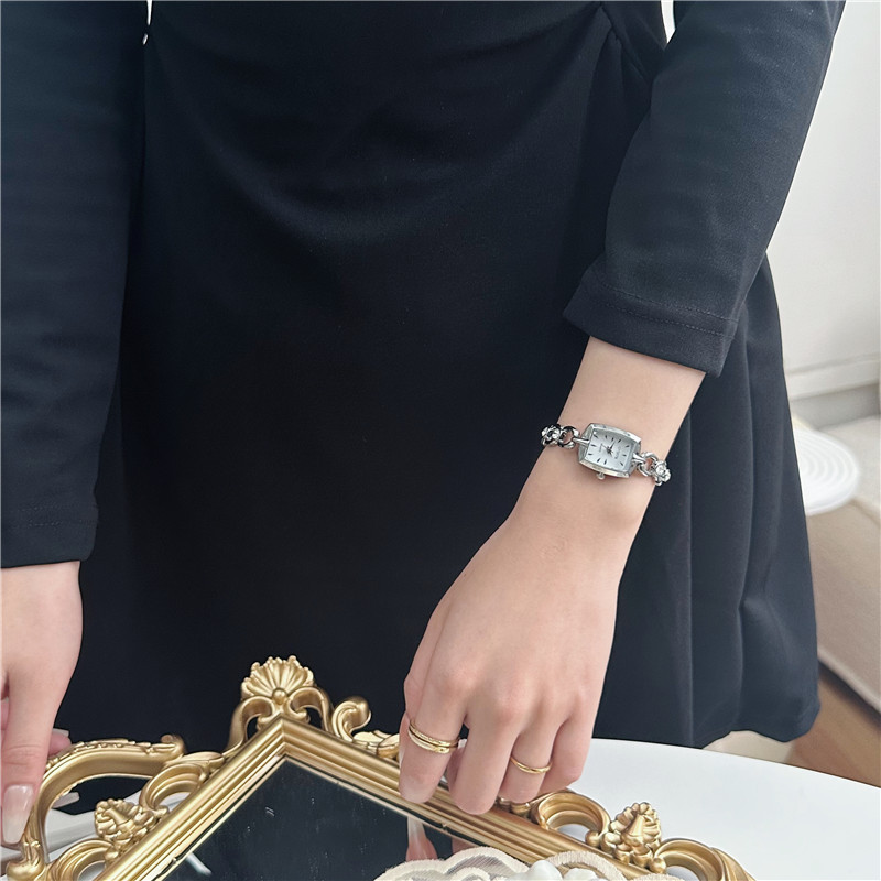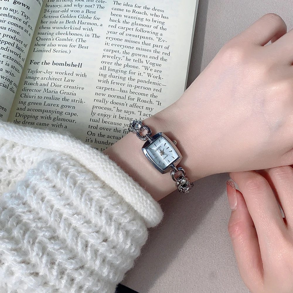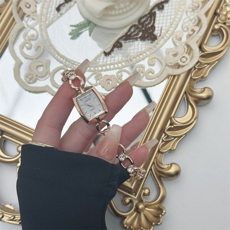 สุภาพสตรีนาฬิกา Minimalist Square Dial สายโซ่นาฬิกาสําหรับผู้หญิงหรูหราแฟชั่นสร้อยข้อมือควอตซ์นาฬิกาสําหรับผู้หญิงสาว