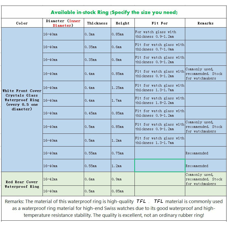 สีแดงนาฬิกากลับกรณีกันน้ํา ฉัน-แหวน หนา 0.6 มม.สูง 0.9 มม. 16 มม.-42 มม. ฝาครอบด้านหลังปะเก็นแหวนปิดผนึกซ่อมเครื่องมืออะไหล่