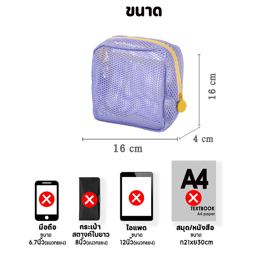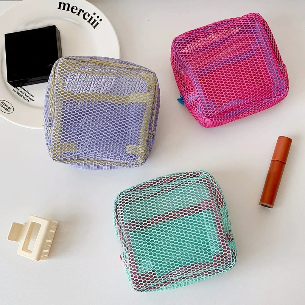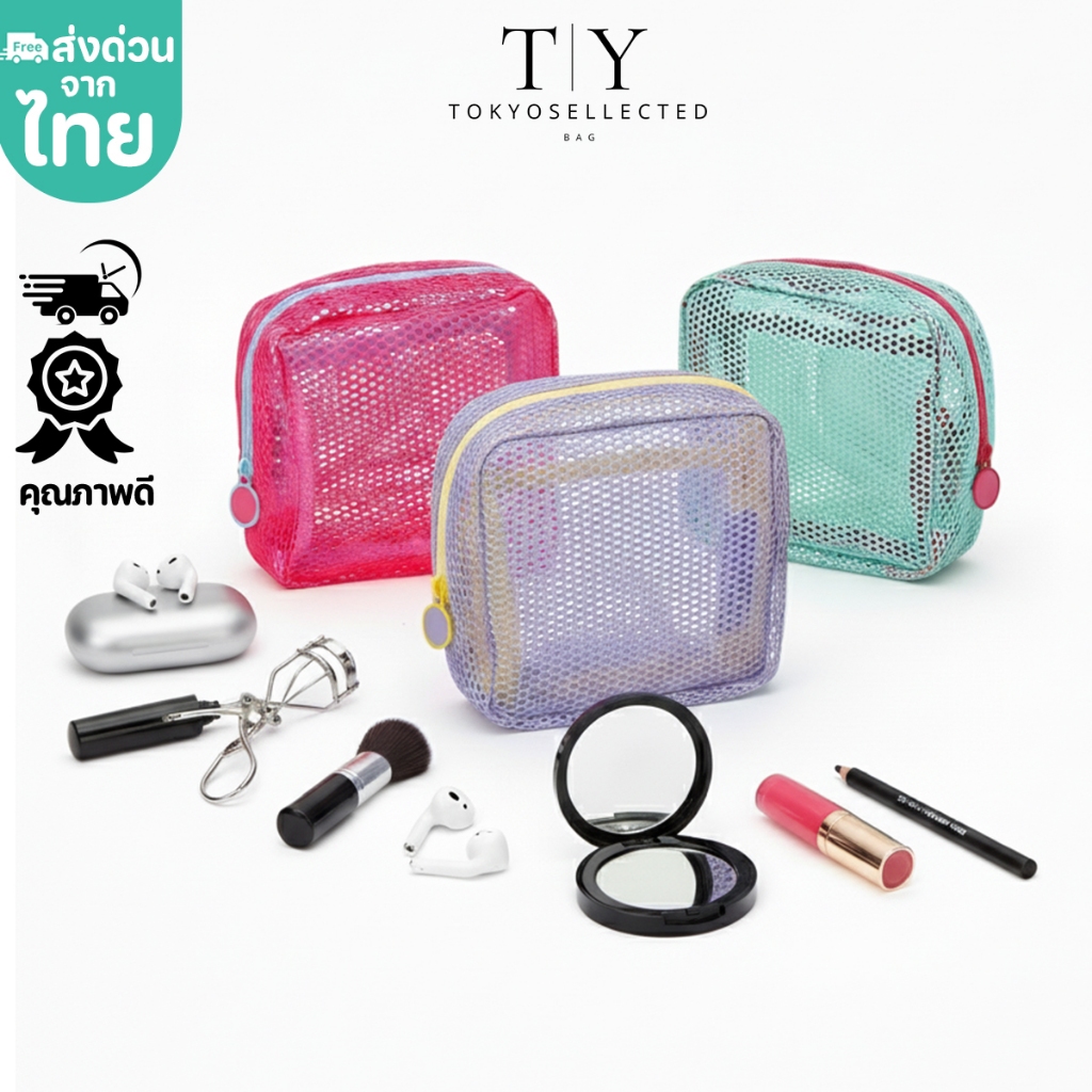 (มีส่งด่วน) tokyosellected(T2404) กระเป๋าใส่ของจัดระเบียบ ขนาด7นิ้ว-ผ้าตาข่าย ใส่เครื่องสำอางค์/สายชาร์จ/ชุดหูฟังชาร์จ