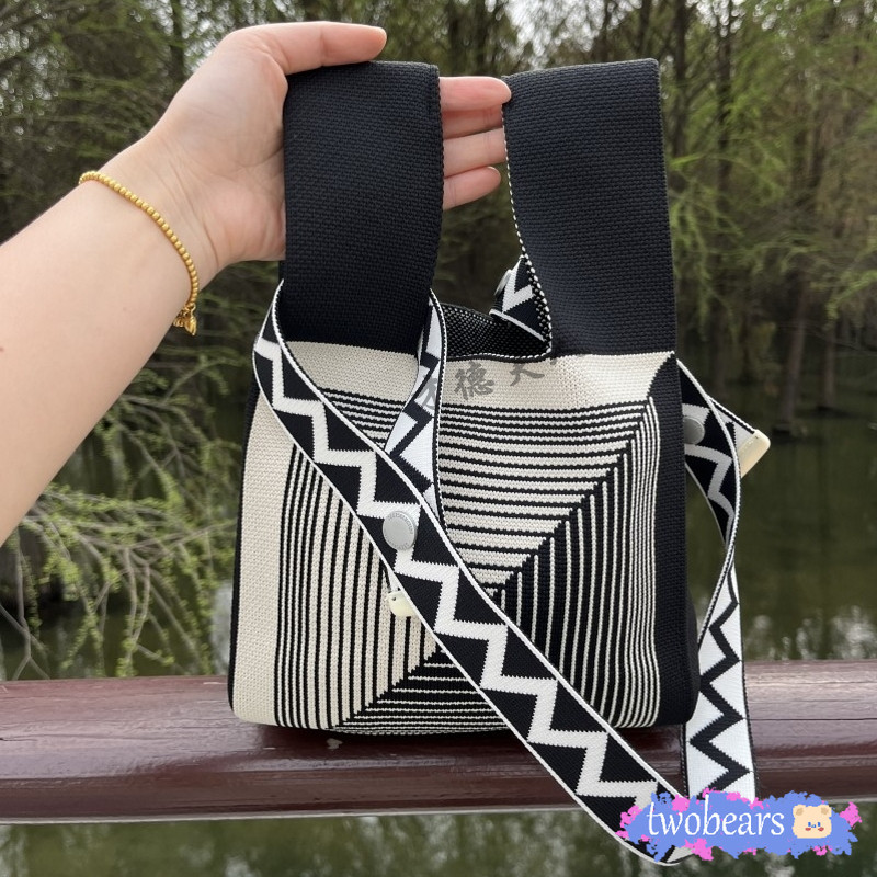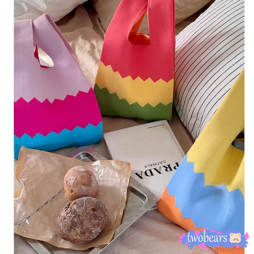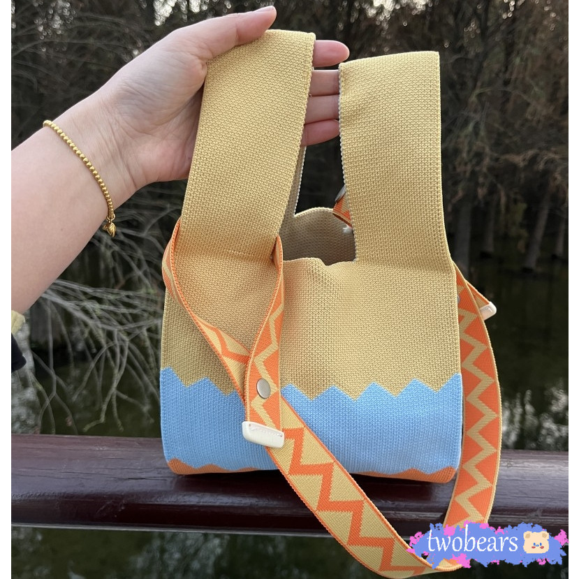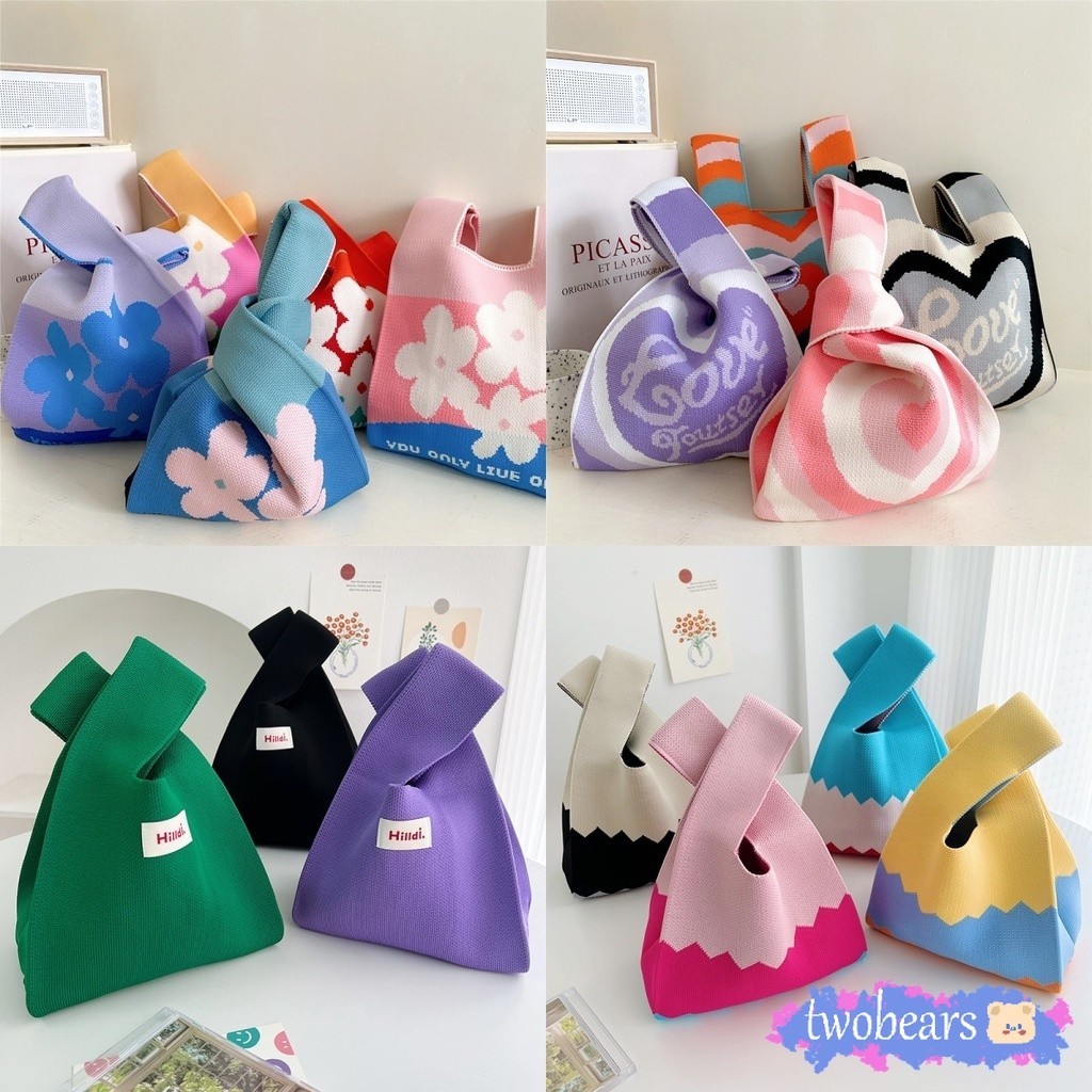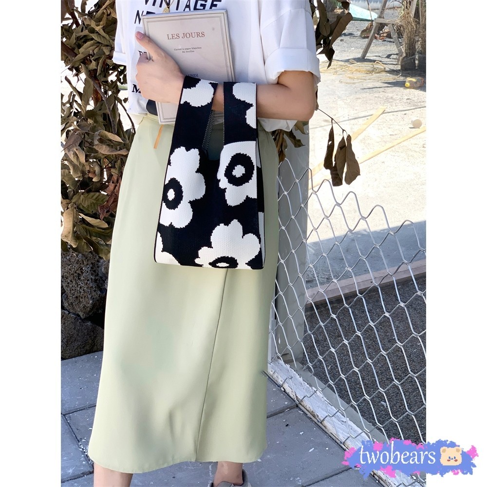 ?พร้องส่ง กระเป๋าถือถัก ลายดอกไม้ แฮนด์เมด สําหรับผู้หญิง ไหมพรม