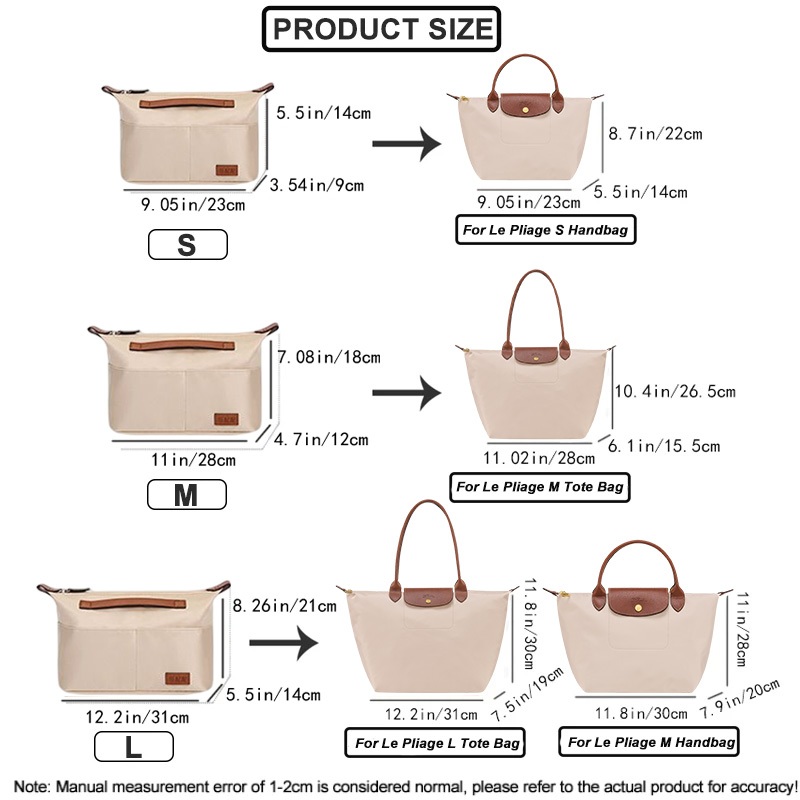 ที่จัดระเบียบกระเป๋า Longchamp S Handbag ( S หูสั้น)/ M Tote bag (S หูยาว) / M Handbag (M หูสั้น) / L Tote bag (M หูยาว)