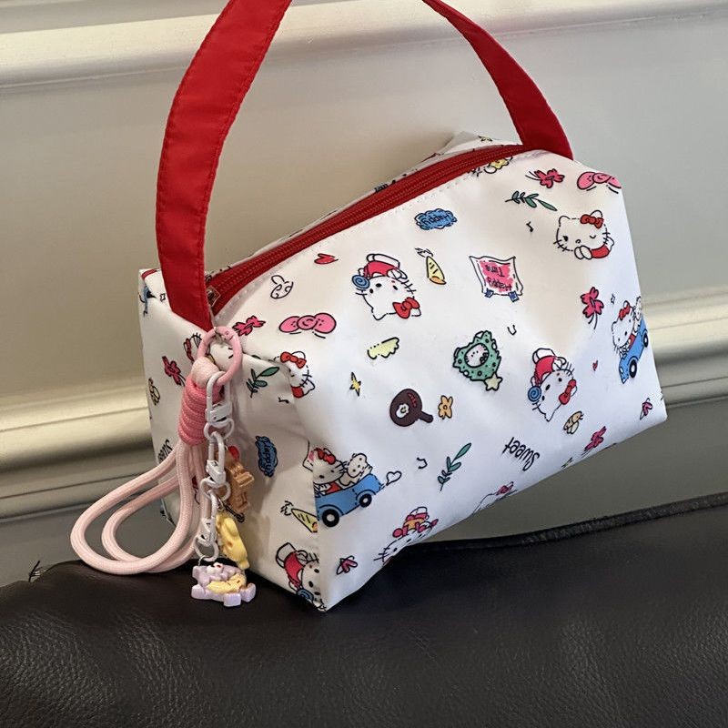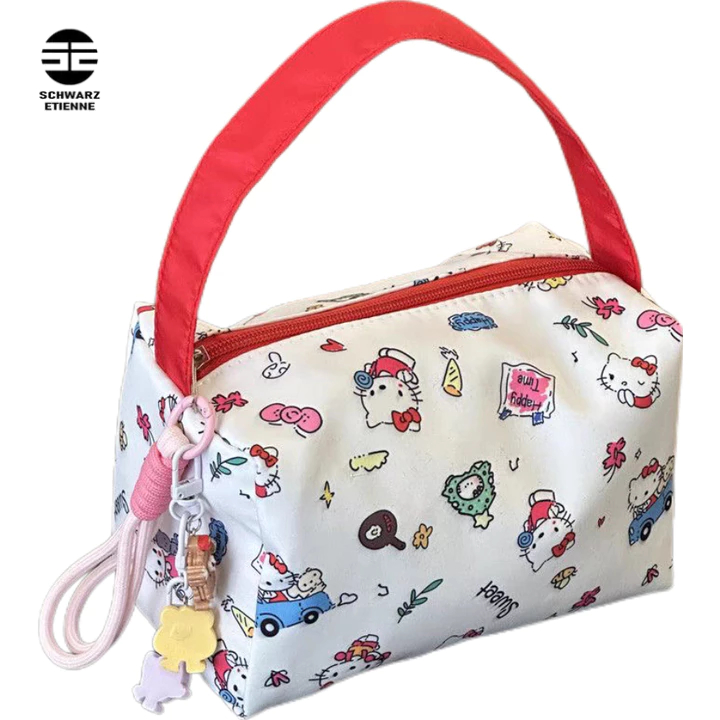 ชวัซ นิรันดร์ กระเป๋าเครื่องสําอางผู้หญิงน่ารัก สวัสดี คิตตี้ พิมพ์กระเป๋าเก็บความจุขนาดใหญ่