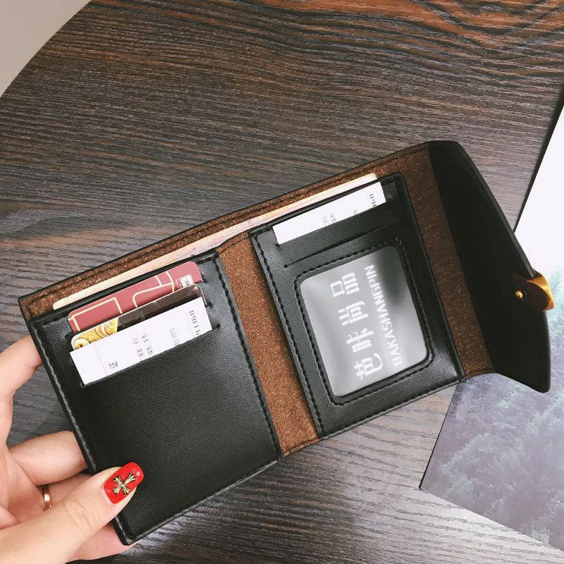 อิน ใหม่ผู้หญิงที่เรียบง่ายกระเป๋าสตางค์สั้นหนังแท้หลายบัตรกระเป๋าสตางค์ย้อนยุคนักเรียนกระเป๋าสตางค์ที่สําคัญเหรียญกระเป๋าบัตรกร