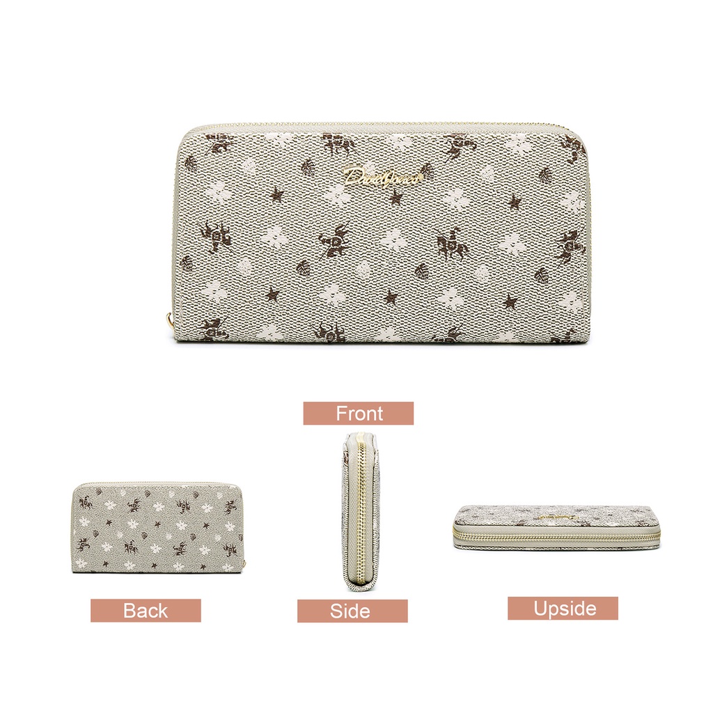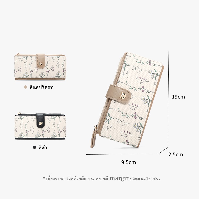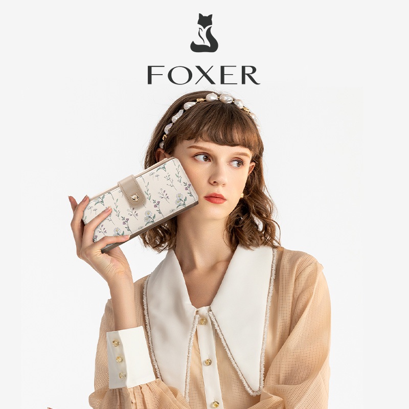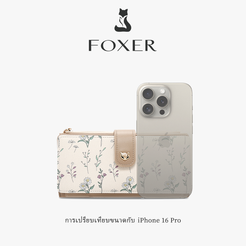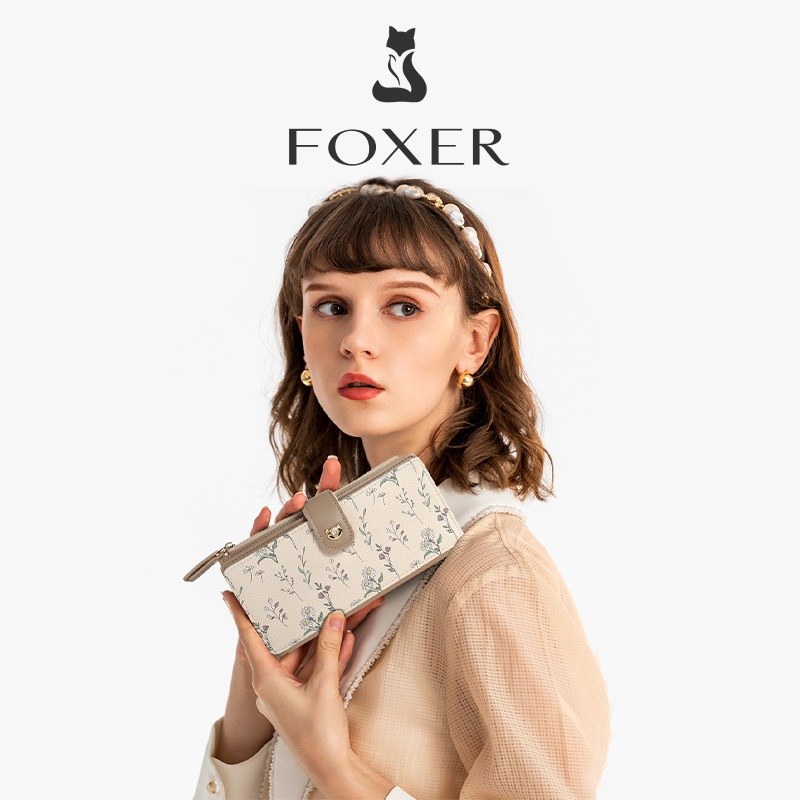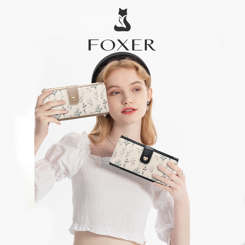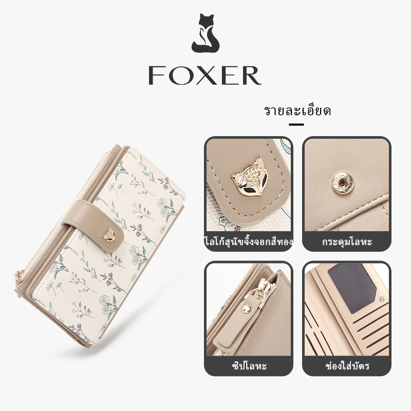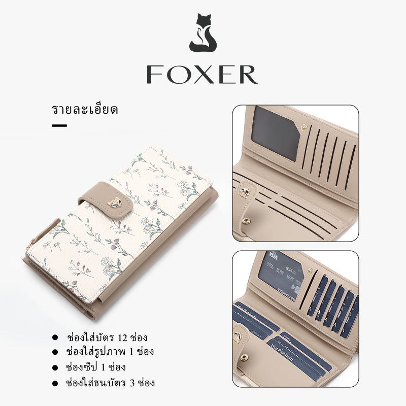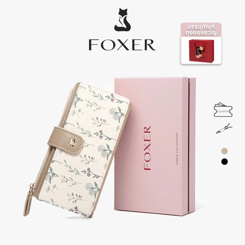 FOXER กระเป๋าสตางค์ยาวสำหรับผู้หญิง ลายดอกไม้ กระเป๋าใส่เหรียญ ทนทาน พร้อมช่องใส่บัตรเครดิตและช่องใส่เหรียญ